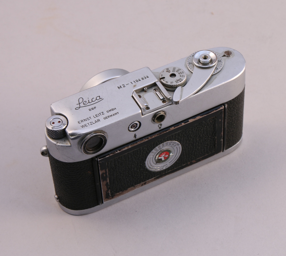 Leica M2 No 1062414 avec objectif Elmar 1:2.8 F = 50, avec sacoche brune.
