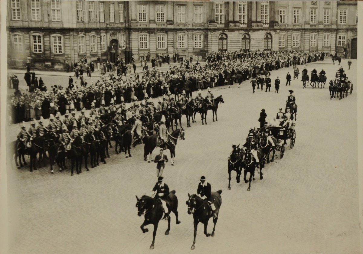 - Arrivée du cortège princier lors du mariage du Prince Frederic de Danemark et de la Princesse Ingrid de Suède en 1935. 17 x 14 cm.