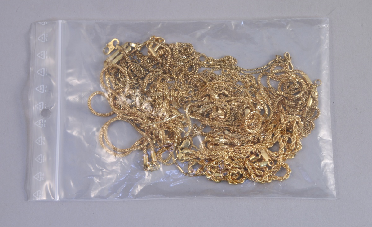 OR jaune À LA CASSE, 22K, dont chaîne et pendentif.