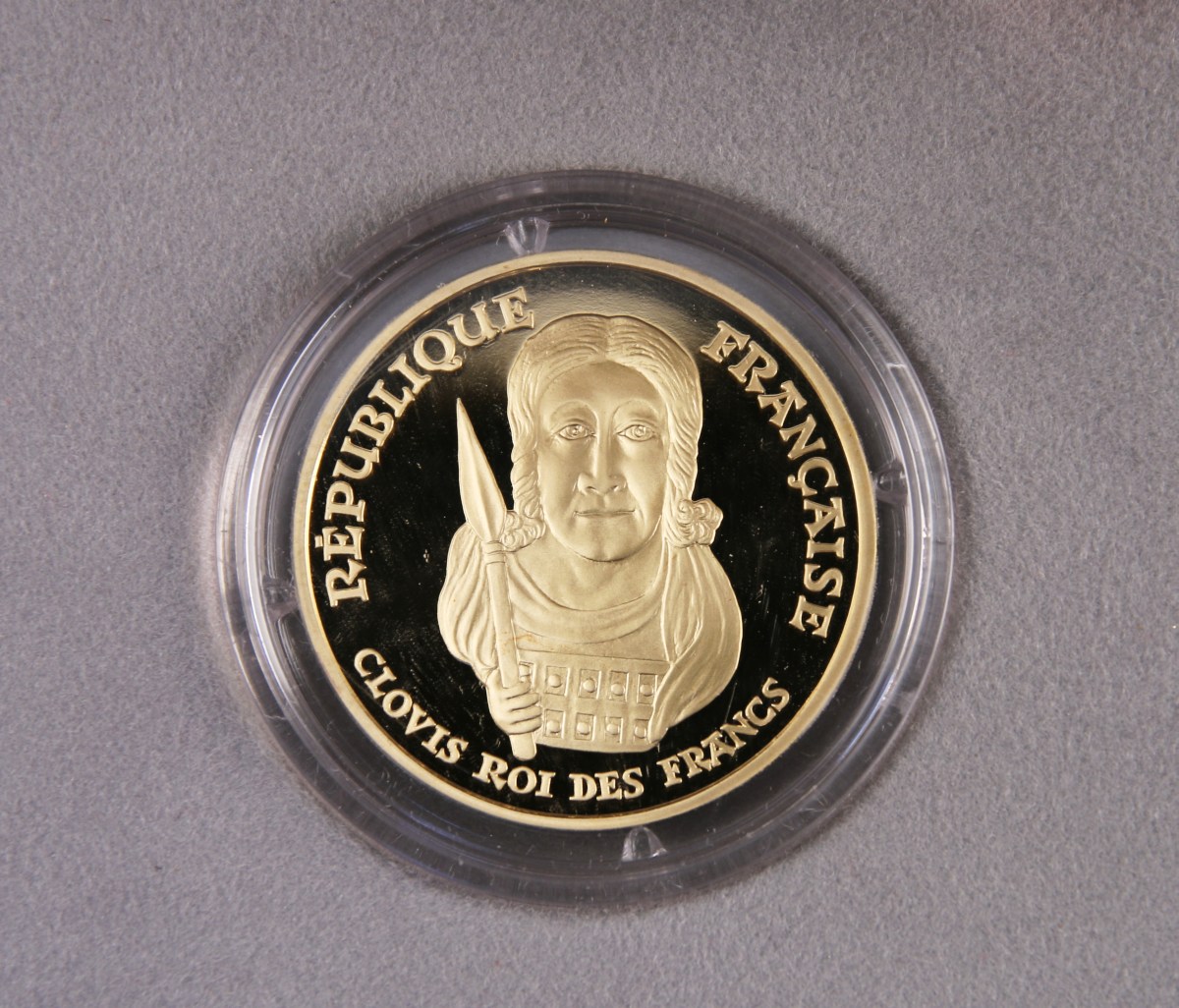 FRANCE. Pièce de 500 FRANCS OR (Paris, 1996) figurant le Baptême de Clovis éditée par la Monnaie de Paris à 250 exemplaire pour le 1500ème anniversaire du baptême de Clovis.