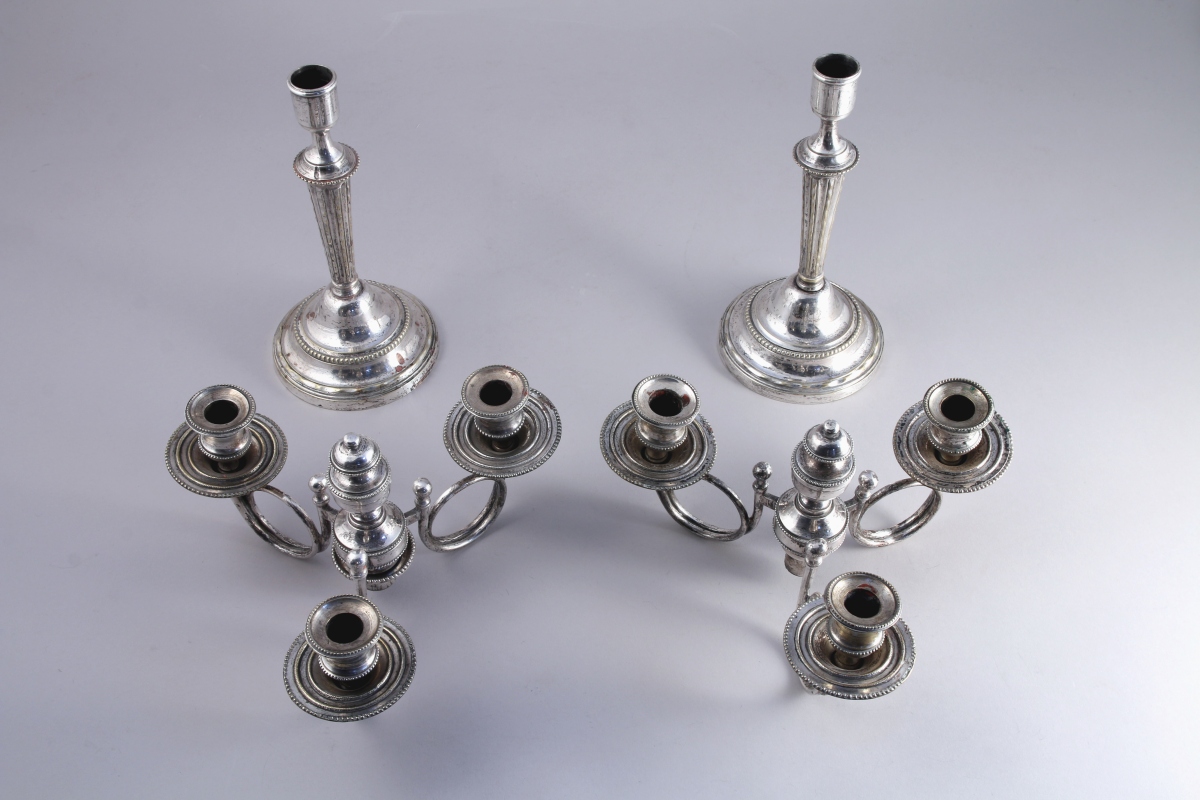 Haut. 35, Diam. 25 cm. (manque la bobèche d'un flambeau, usures)