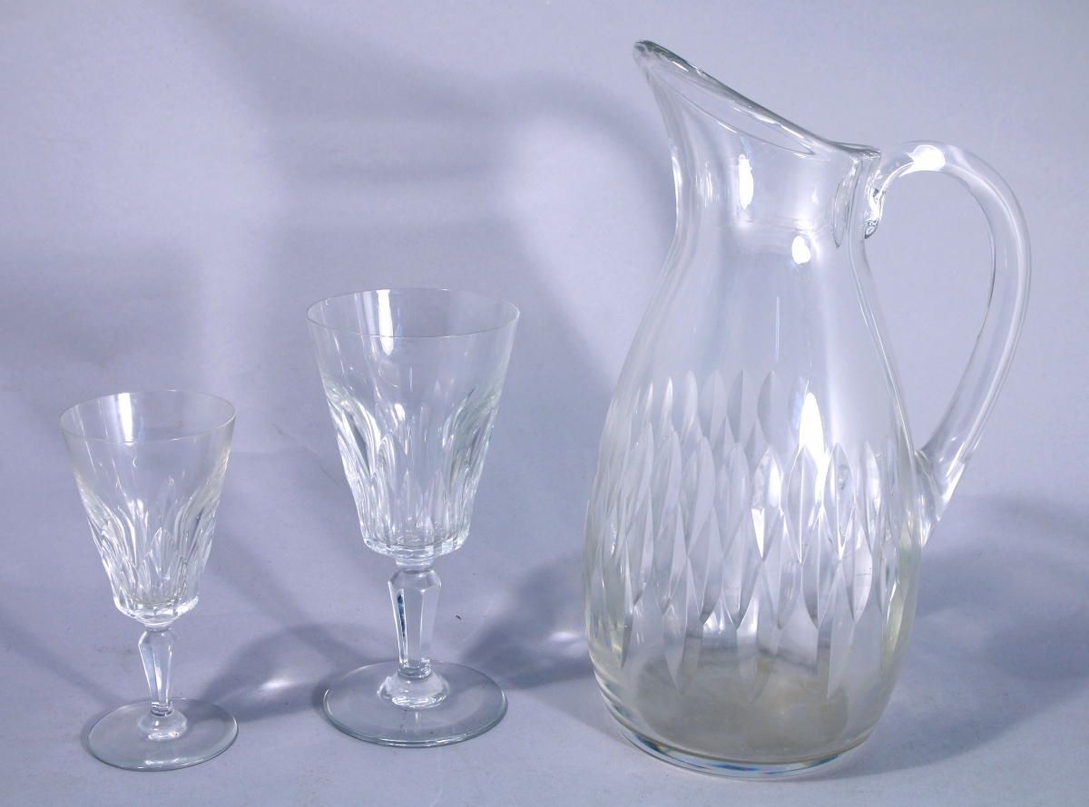 BACCARAT. SERVICE de VERRES en cristal taillé, 41 pièces, à décor facetté de navettes. Il se compose de 20 VERRES À EAU, 20 VERRES À VIN et d'une CARAFE.