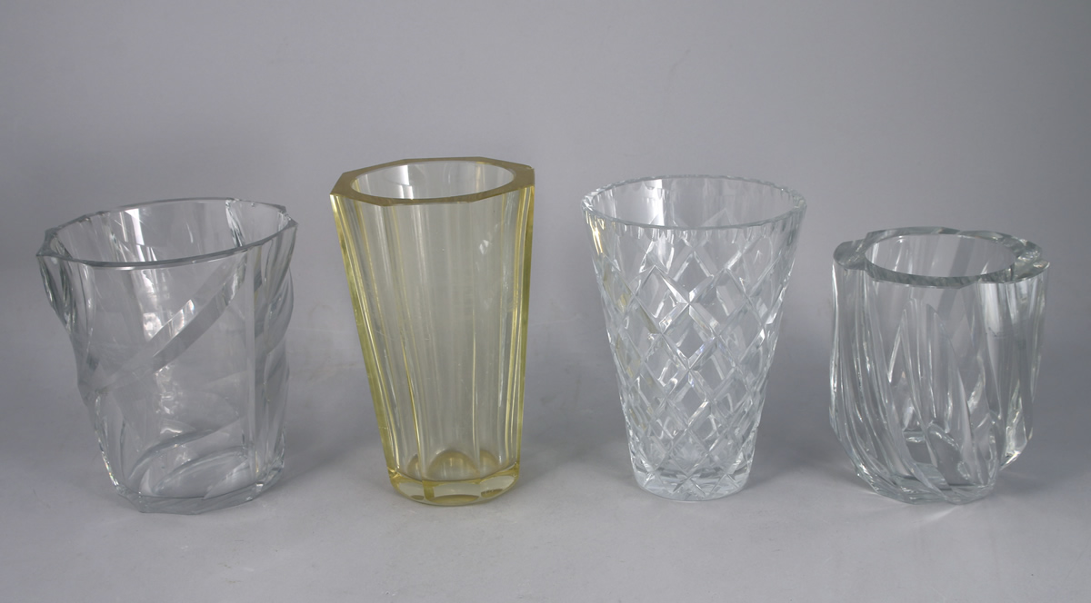 - BACCARAT. Vase de forme tronconique à décor ondé. Cachet. XXe. Haut. 17, Diam. 16 cm. (éclats, égrenures)