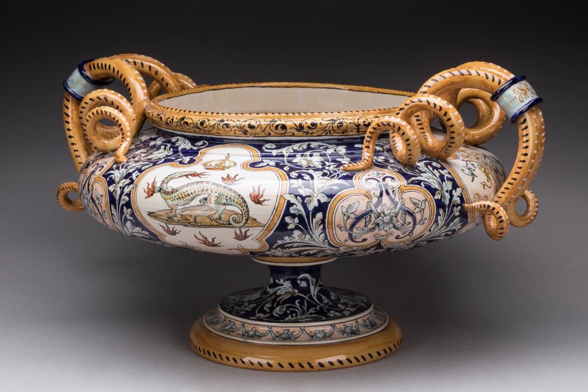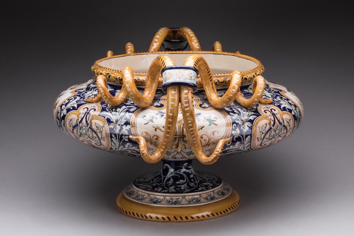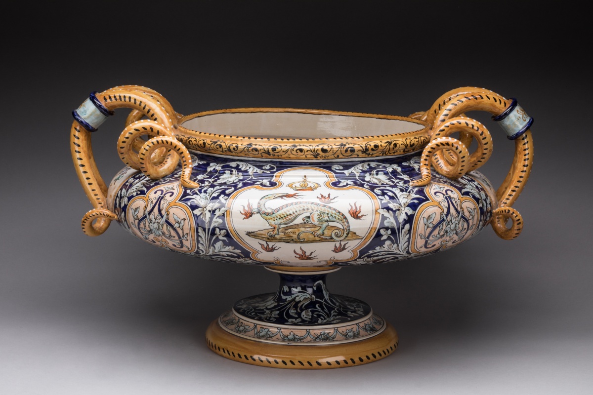 Ulysse BESNARD, dit ULYSSE (1826-1899) fut l'élève à Paris de Victor Chavet, peintre de genre et de portrait. Il expose aux Salons de 1857 à 1861. De retour dans sa ville natale de Blois, dès 1858, il se met progressivement à la faïence pour fonder sa propre maison, en octobre 1862. L'influence des céramiques françaises et italiennes de La Renaissance ainsi que du style hispano-mauresque est très présente dans son oeuvre. La période 1872-1884 marque l'apogée de ses céramiques. À sa mort en 1899, les décorateurs Émile Balon (1859-1929) puis Gaston Bruneau (1881-1965) lui succèdent jusqu'à la fermeture de la fabrique en 1953.