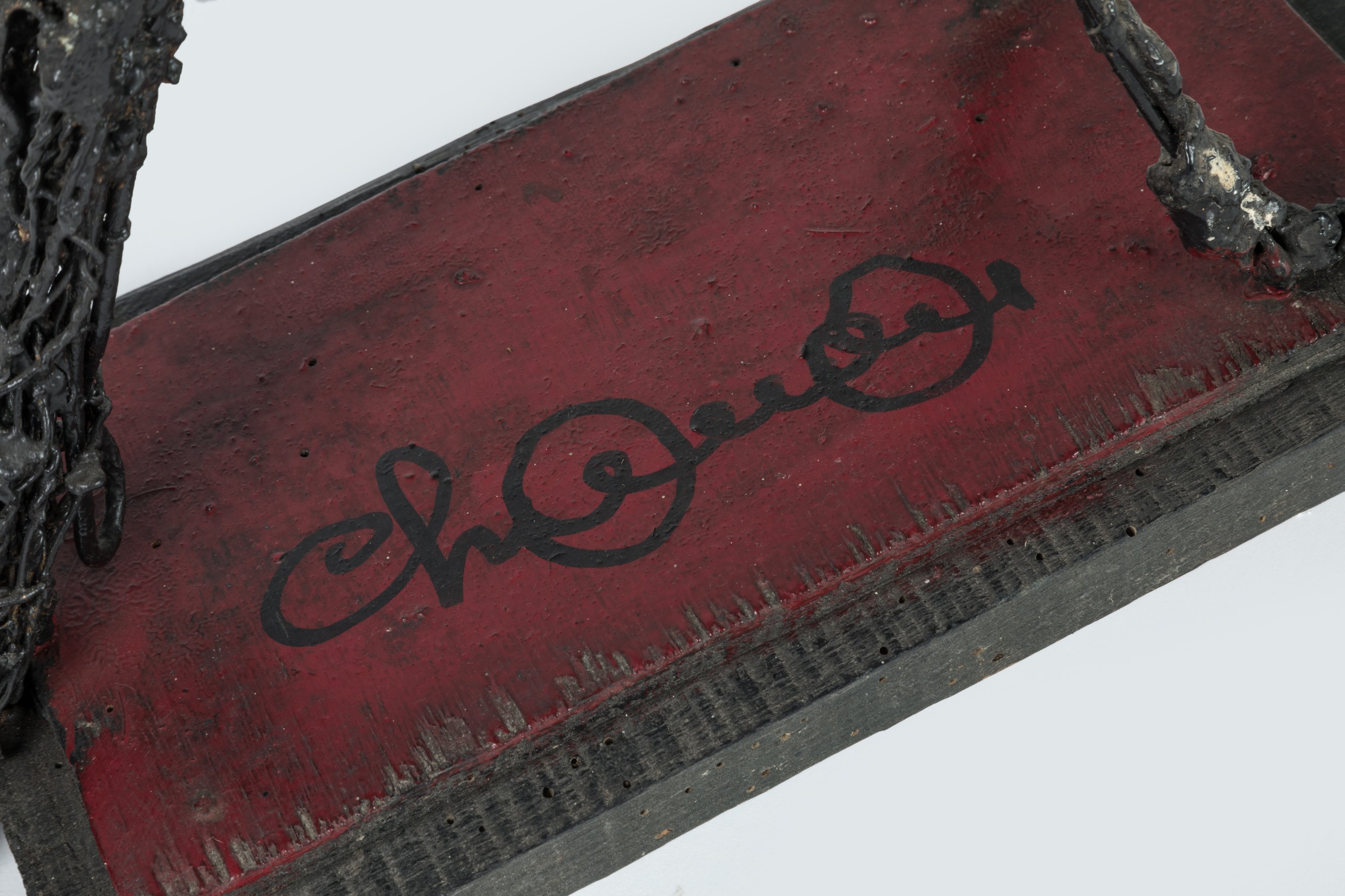 Grillage, plastique fondu et incrusté, peinture.