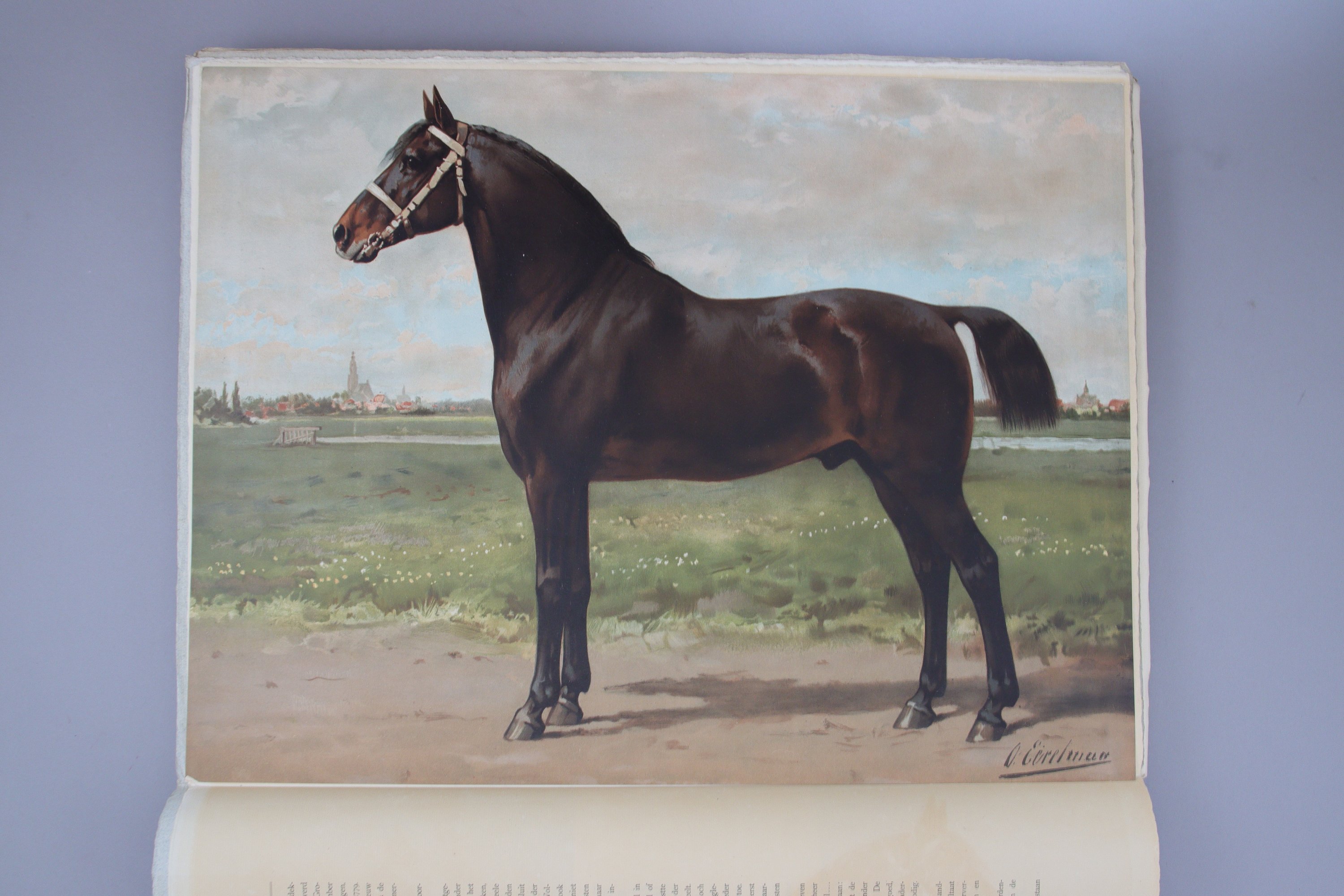 Peintre officiel, Otto Eerelman est au service de la famille royale des Pays-Bas, livrant notamment des portraits en tenue d'équitation de la reine Wilhelmine. Il se spécialise par ailleurs dans les représentations équines, dont cet album livre un corpus intéressant de 41 races de chevaux. Afin de financer l'édition, une souscription est lancée auprès des plus importants mécènes, dont leurs Majestés la Reine et la Reine mère.