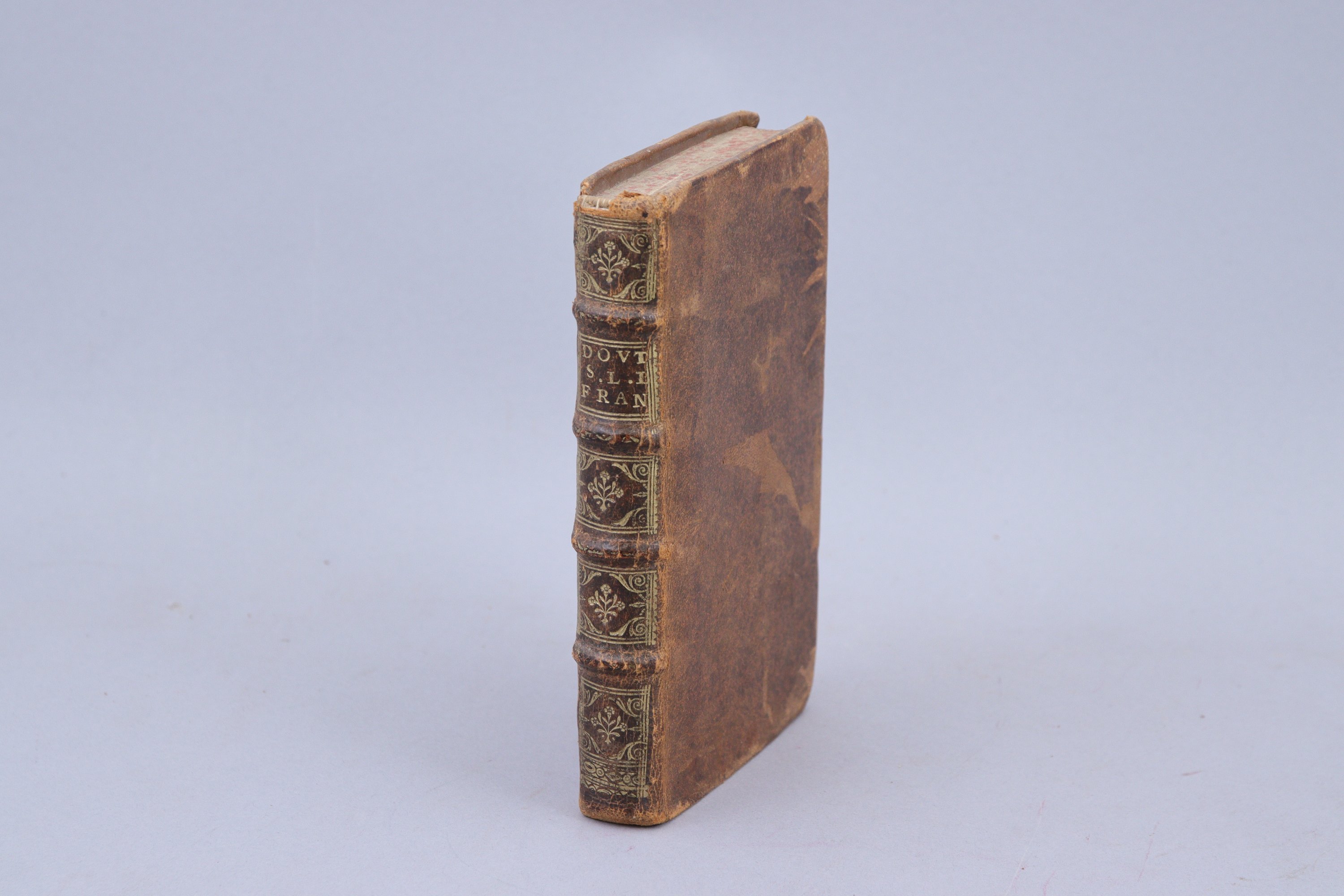 In-12, (4 ff), 281 pages et (9 ff). Plein veau brun du temps. (Mors fendu sur 6 cm. Coiffes et coins émoussés).