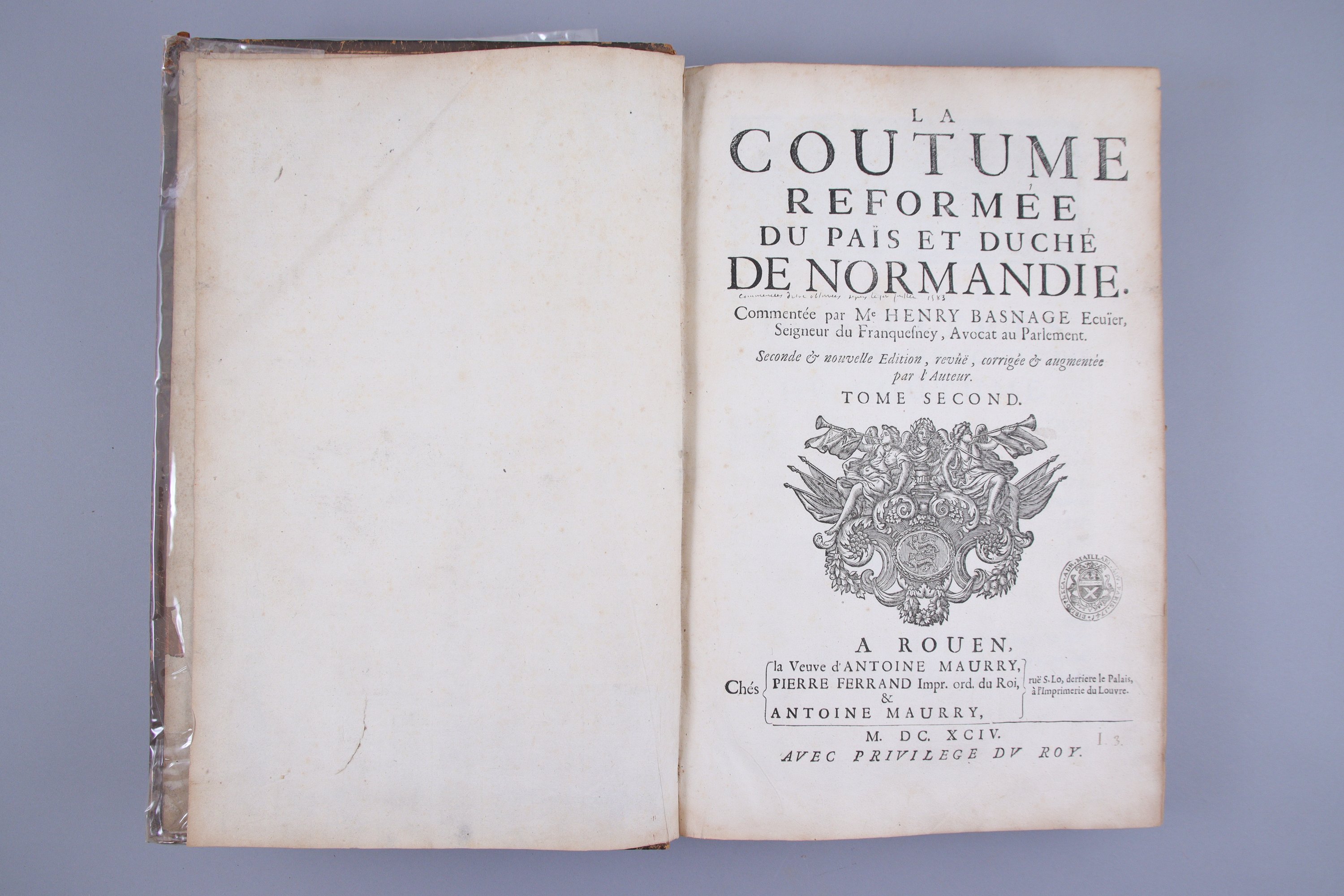 Rouen, Veuve d'Antoine Maurry et Pierre Ferrand. 1694