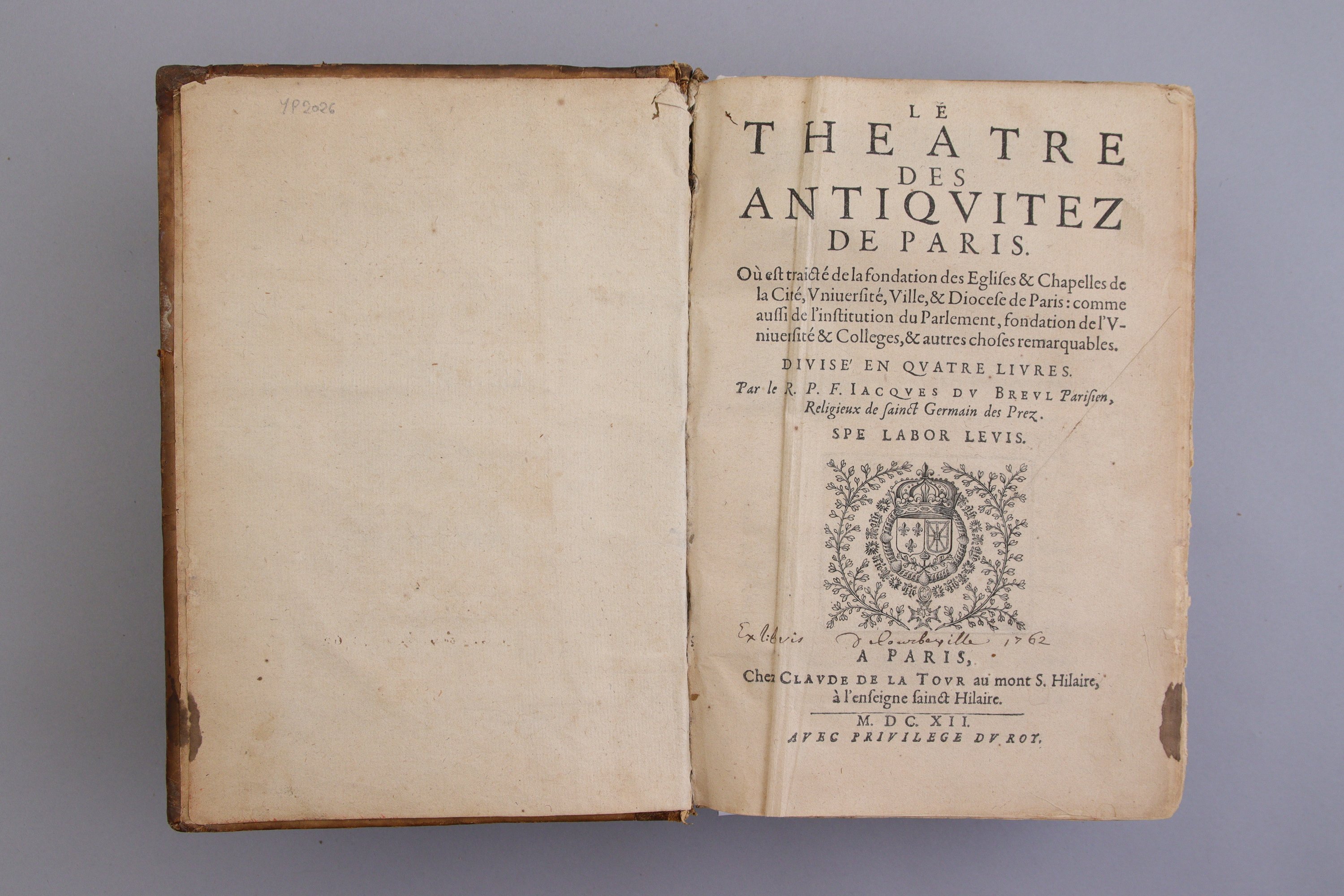 Le Théâtre des Antiquitez de Paris où il est traicté de la fondation des églises & chapelles de la Cité, université, ville et diocèse de Paris: comme aussi de l'institution du Parlement, fondation de l'Université & collèges et autres choses remarquables, divisé en quatre livres. Par le R.P.F. Du Breul, Parisien, Religieux de Saint Germain des Prez.