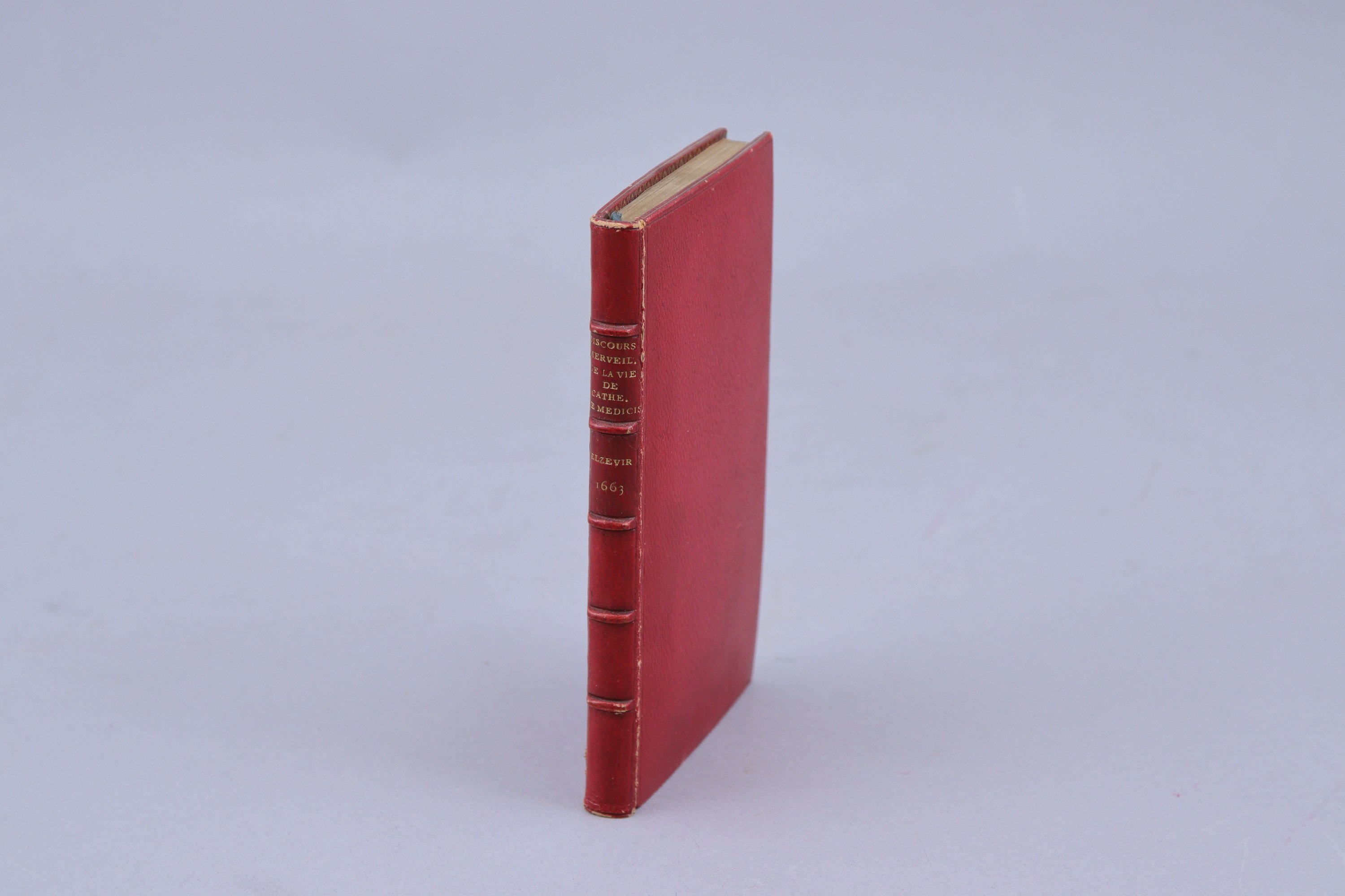 Petit in-12, 156 pages. Plein maroquin rouge janséniste ; filet sur les coupes ; tranches dorées, décor intérieur. Reliure du XIXème siècle.