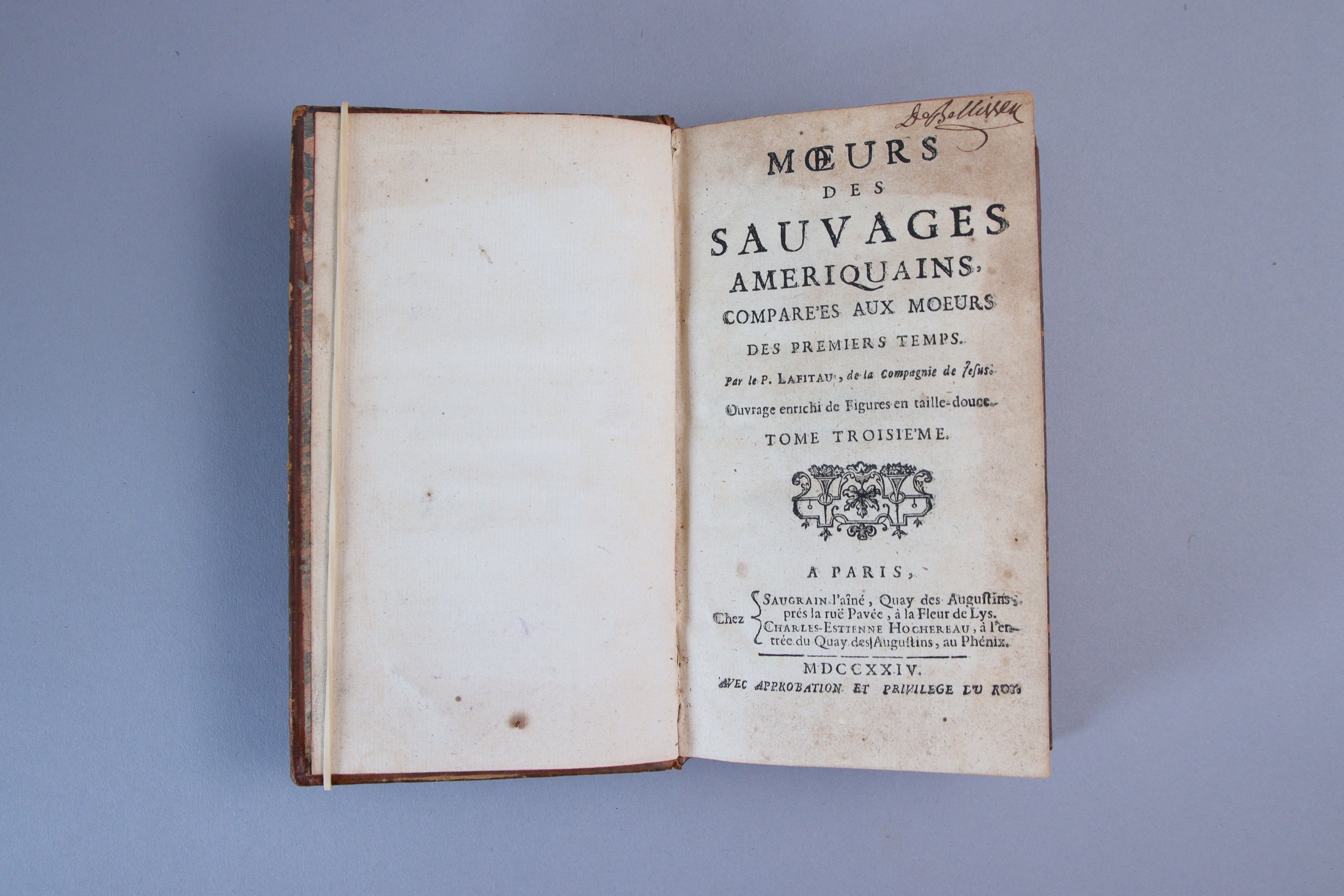 Moeurs des sauvages amériquains comparées aux moeurs des premiers temps. Par le P. Lafitau, de la Compagnie de Jésus. Ouvrage enrichi de figures en taille-douce..