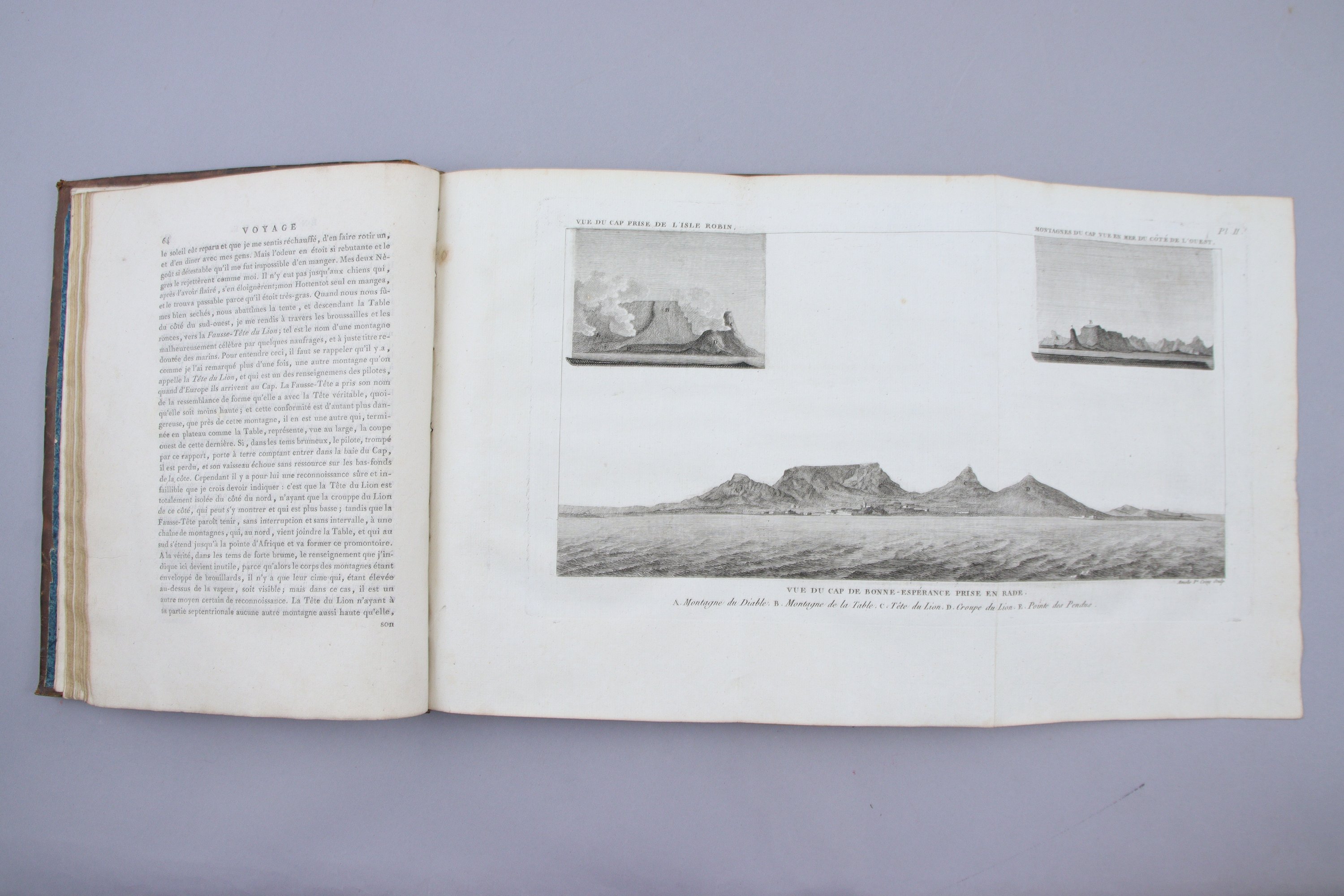 Assez bon exemplaire de ce récit de voyage passionnant, qui connut de nombreuses éditions. Le Vaillant, aventurier, ethnologue, ornithologue (et fournisseur d'oiseaux exotiques divers pour les cabinets de curiosité), est un des personnages les plus romanesques de cette époque qui n’en manquait pas..
