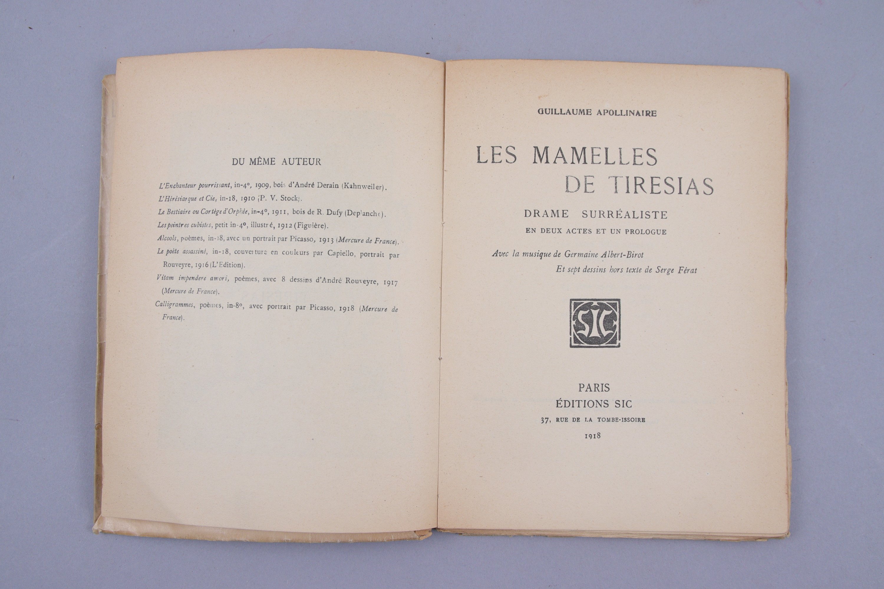 Les mamelles de Tirésias.Drame surréaliste en deux actes et un prologue. Avec la musique de Germaine Albert-Birot. Et sept dessins hors-texte de Serge Férat..