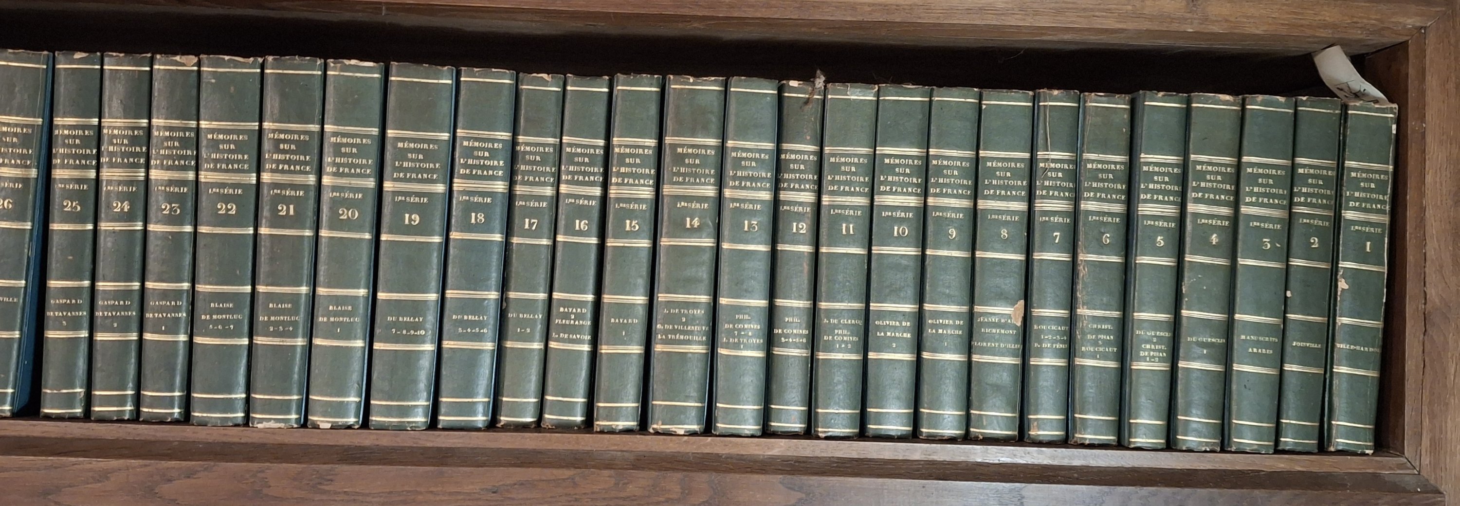 Rare réunion des 3 séries des mémoires relatifs à l’histoire de France, du Vème siècle à 1760.