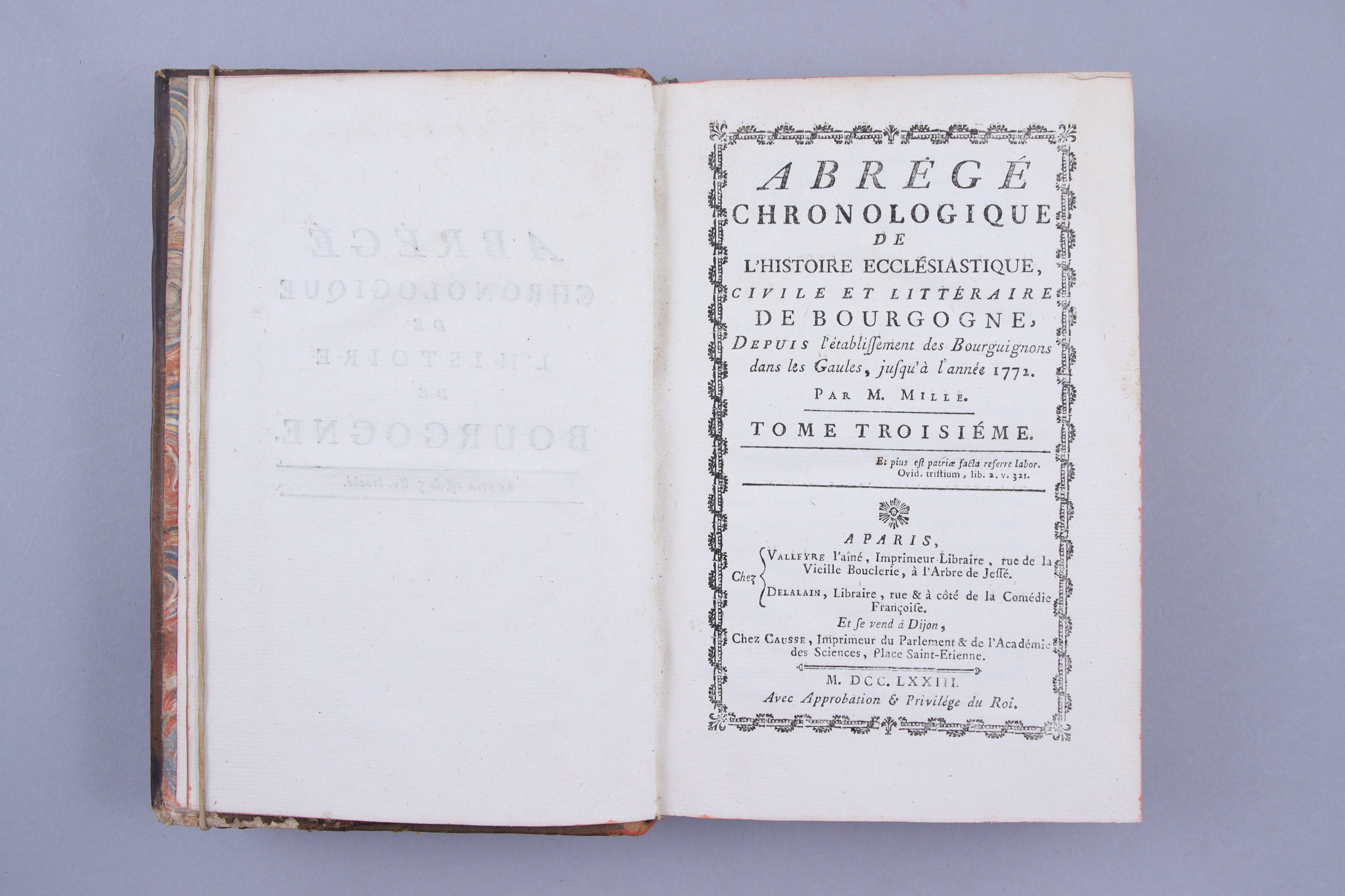 Abrégé chronologique de l'histoire ecclésiastique, civile et littéraire de Bourgogne, depuis l'établissement des Bourguignons dans les Gaules, jusqu'à l'année 1772..
