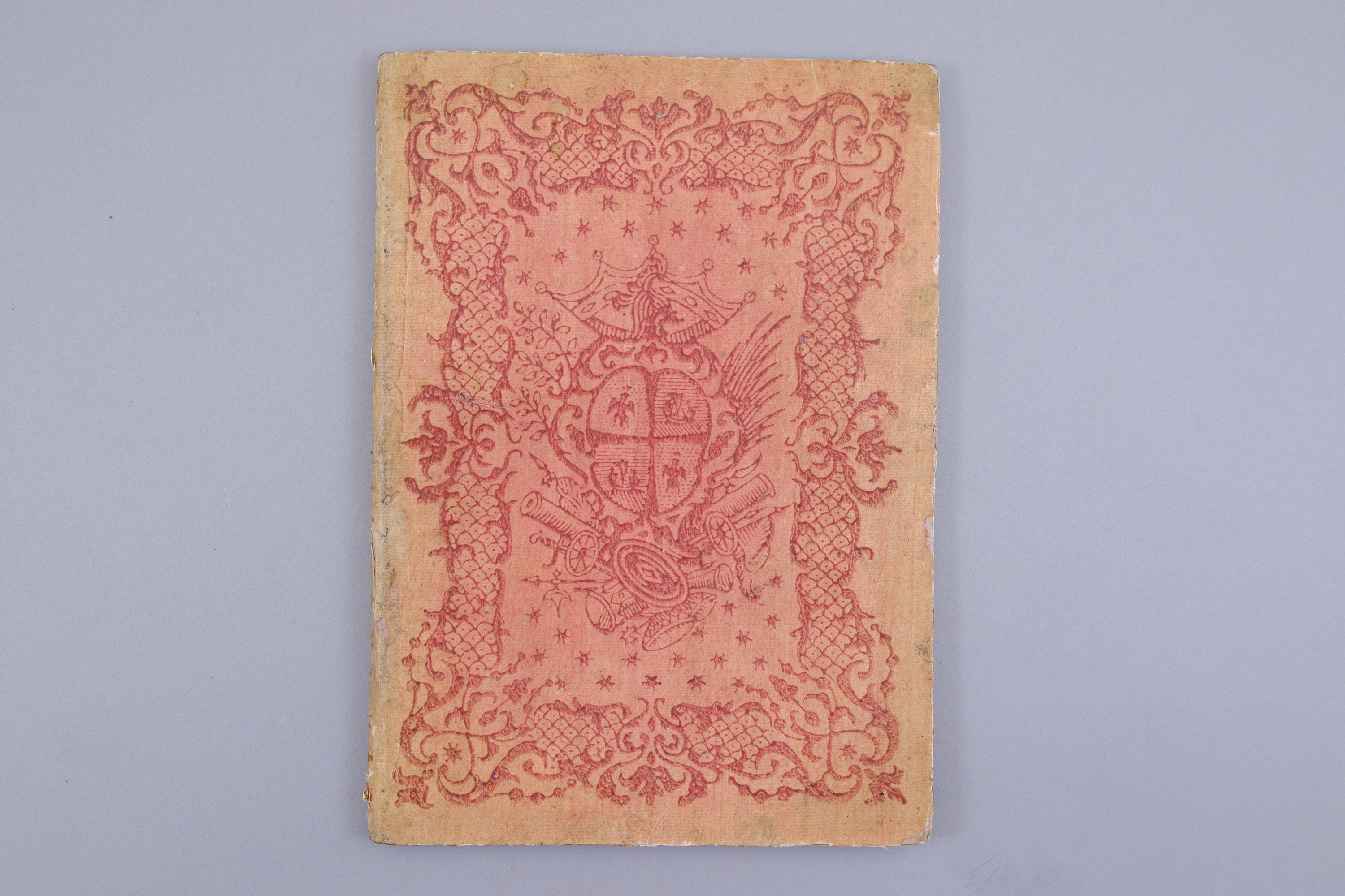 In-4°, cartonnage souple couvert d'un papier vieux rose imprimé, et orné d'un grand encadrement baroque. Armoiries au centre des Giovanelli, famille patricienne de Venise. (Minimes défauts au cartonnage)..