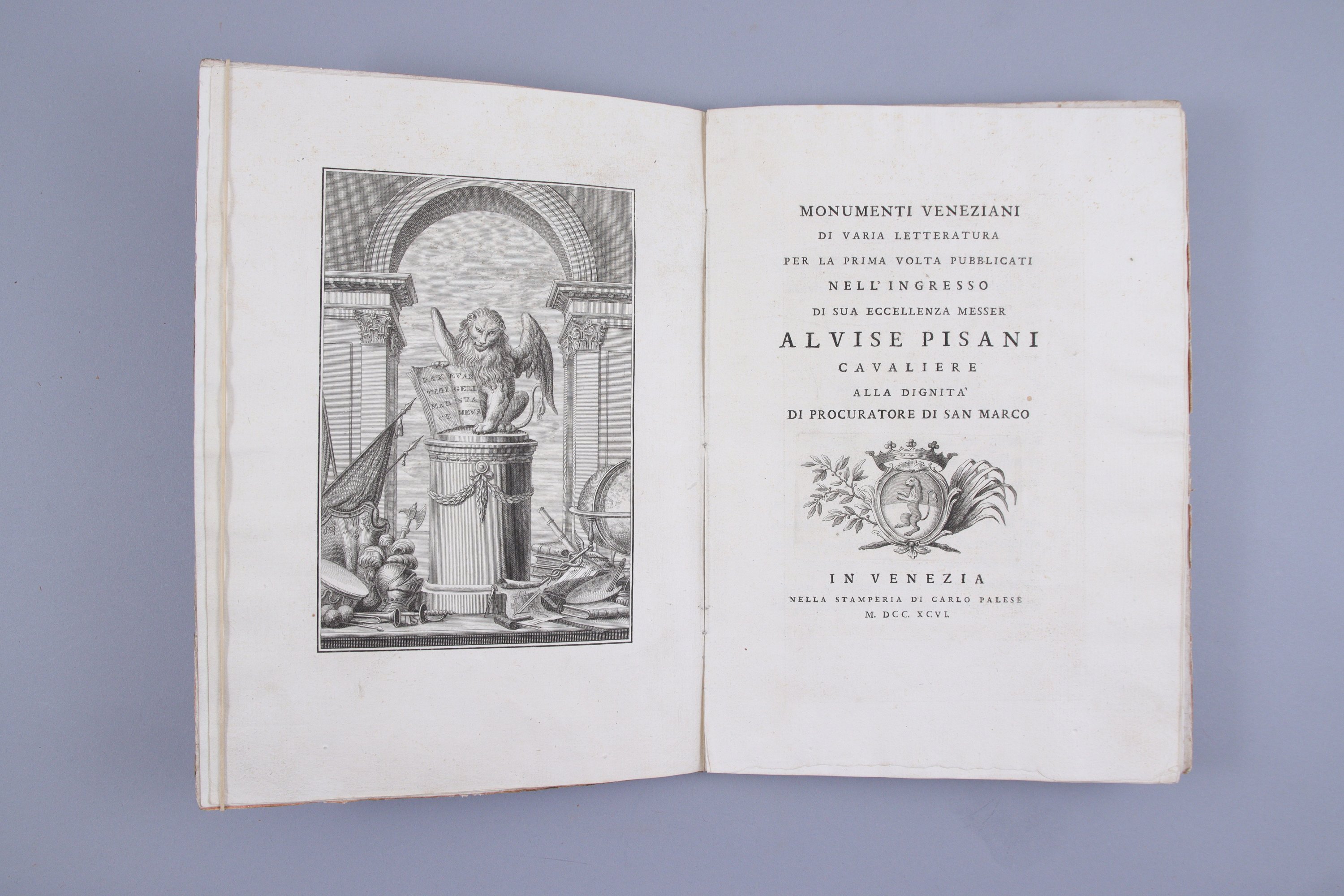 Ouvrage de Jacopo Morelli (1745-1819) conservateur de la bibliothèque de Saint-Marc, dédié à Alvise Pisani, procurateur de la Basilique de Saint-Marc.