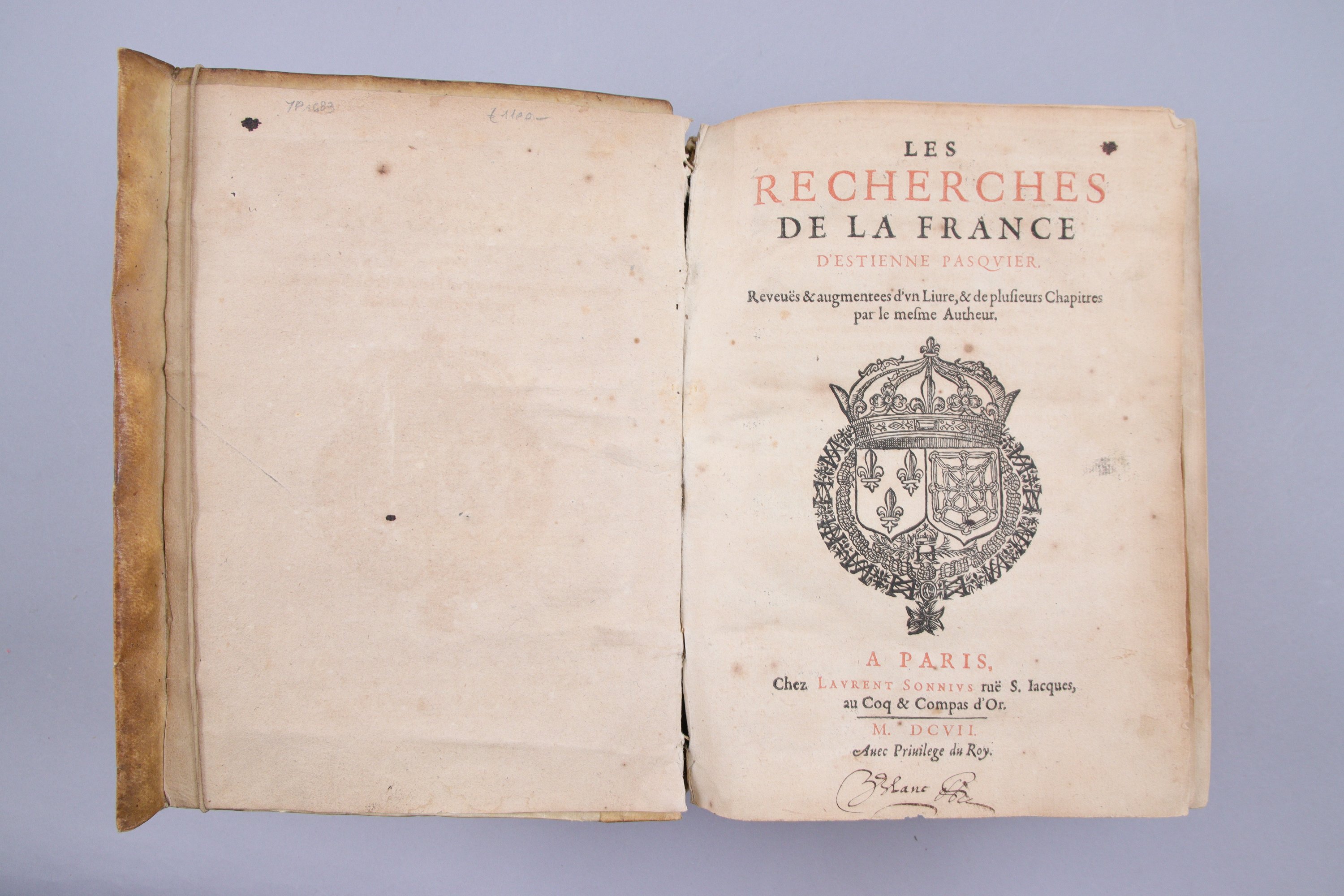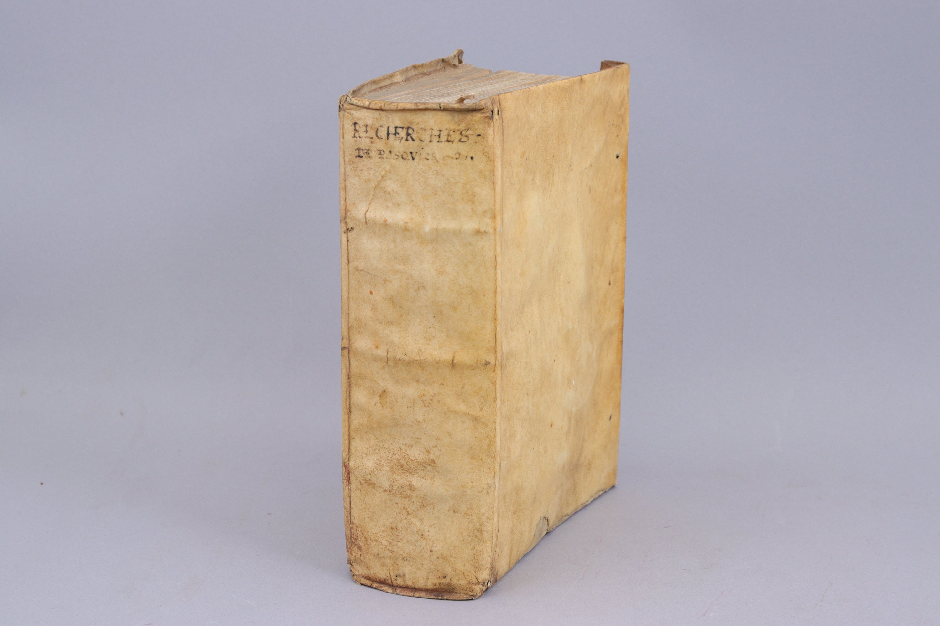 Bon exemplaire, nonobstant les rousseurs, de la dernière édition publiée du vivant de l'auteur, ornée d'un portrait par Thomas de Leu, dans laquelle le Livre VII est en édition riginale. Les livres VI et VII consacrés à l'"Origine de nostre poésie françoise" et à la "Formation de la langue et de l'orthographe françaises", accordent une large place aux écrivains de la Pléiade, dont Pasquier était membre..