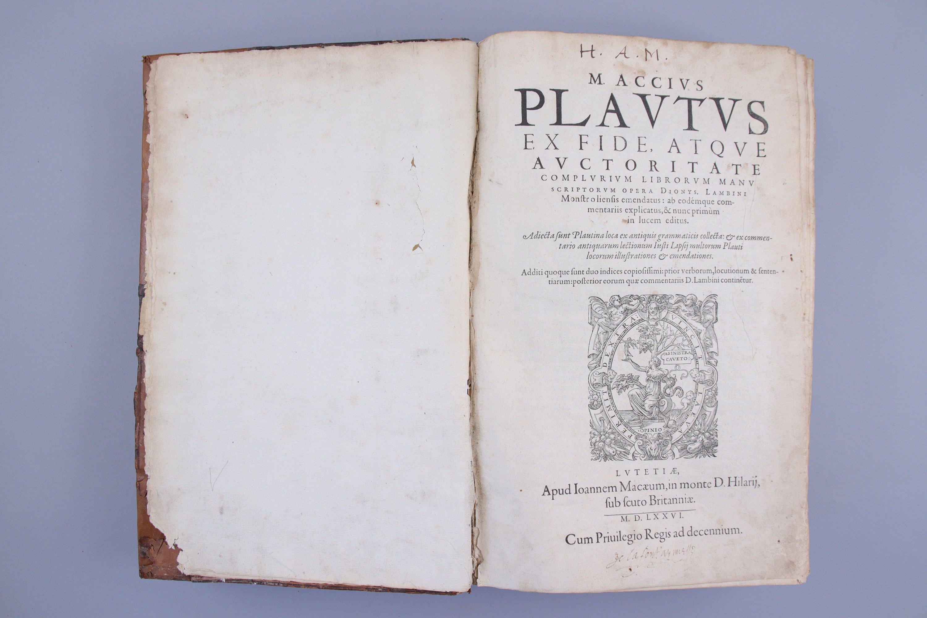 Première édition de cette recension célèbre des Comédies de Plaute par le perfectionniste Lambyn, dont le nom est devenu légendaire en devenant commun.