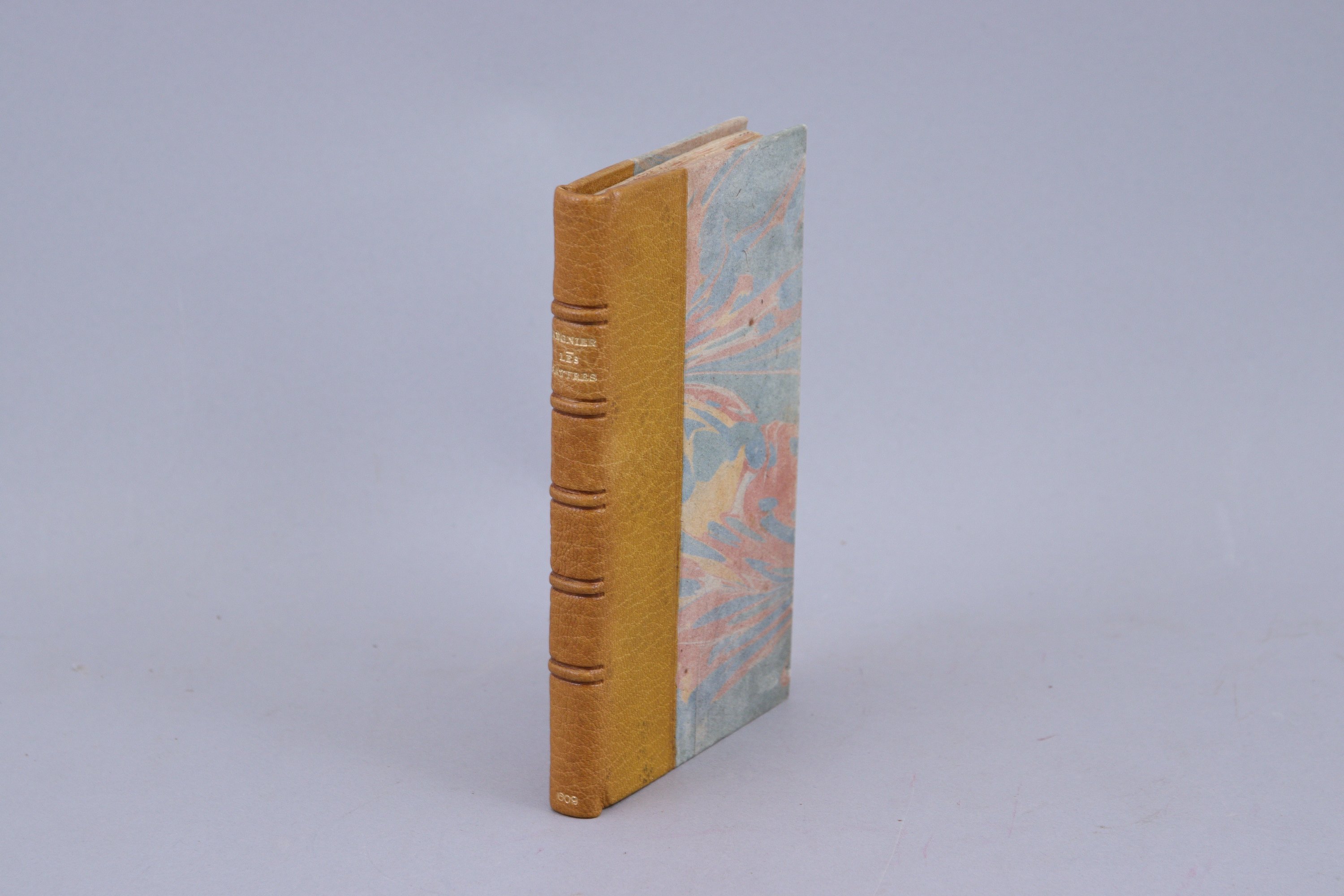 In-12, (4 ff), 133 pages, '1 p.). 1/2 chagrin citron moderne. (Certains cahiers sont rognés trop courts en tête, et les titres courants sont parfois touchés. Une lacune dans le blanc du titre a été comblée, et quelques millimètres de l'encadrement de la marque de l'imprimeur ont été habilement repris à l'encre de Chine.).