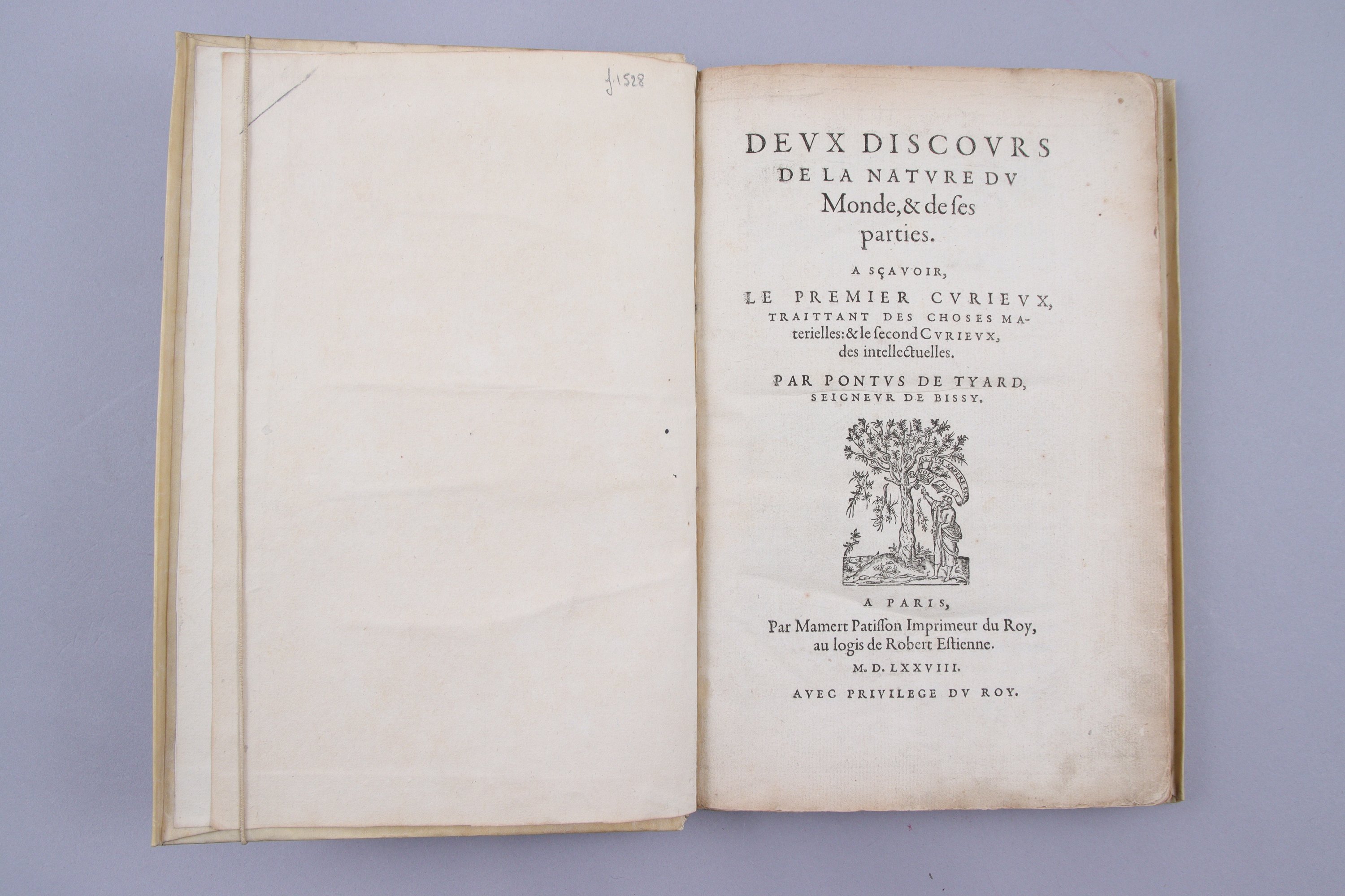Deux discours de la nature du Monde et de ses parties. A sçavoir le premier Curieux, traittant des choses matérielles:& le second Curieux, des intellectuelles. Par Pontus de Tyard, Seigneur de Bissy.