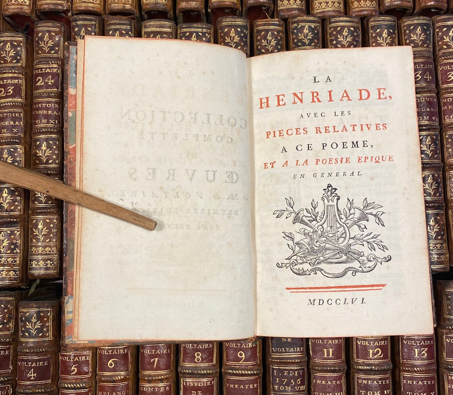 1)-Les 17 volumes de la Collection complette de M. de Voltaire. Première édition. (Cramer, Genève), 1756. (Collation conforme à Bengesco 2133)