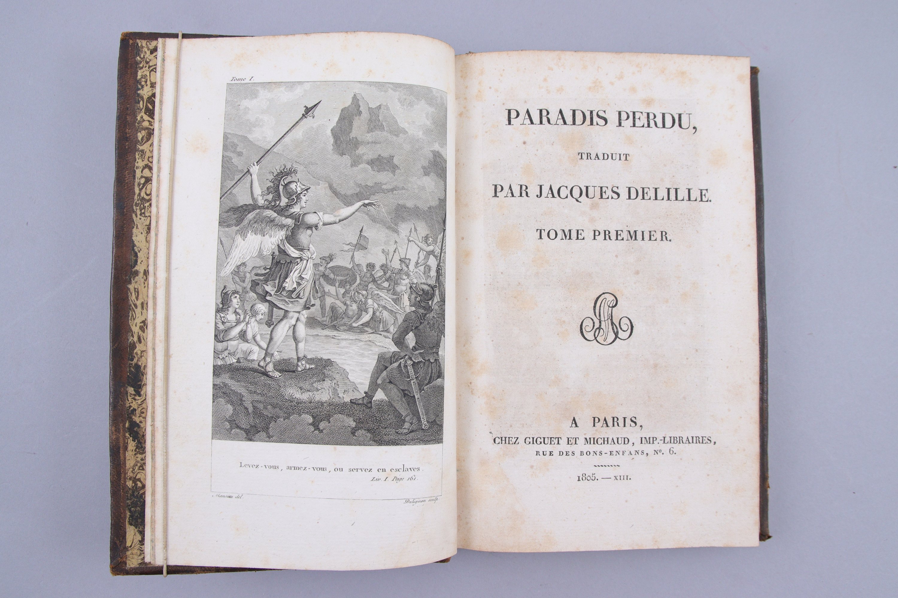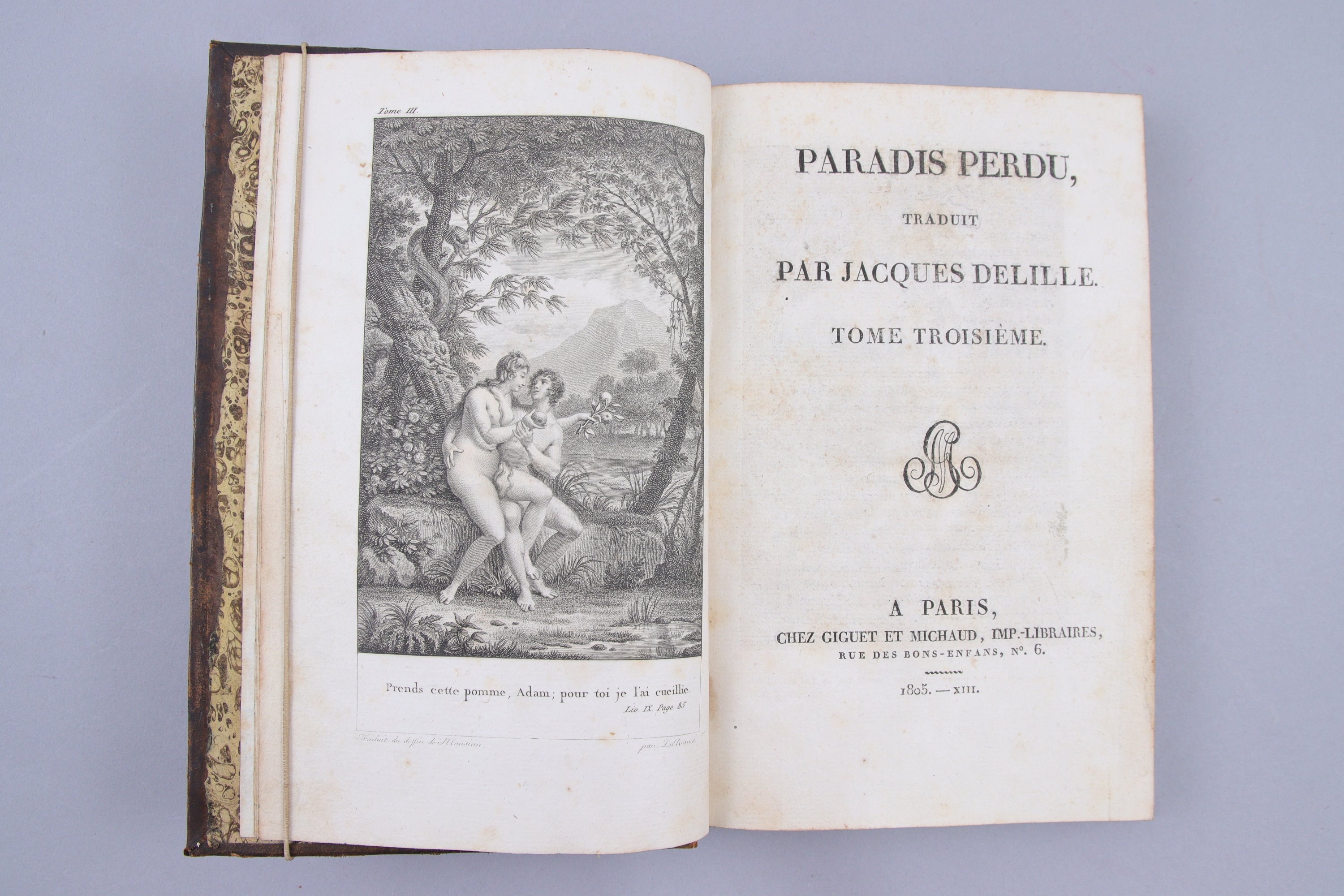 Paradise lost. A poem in twelwe books. Le Paradis perdu, traduit en vers français par Jacques Delille.. Paris, Giguet et Michaud. 1805
