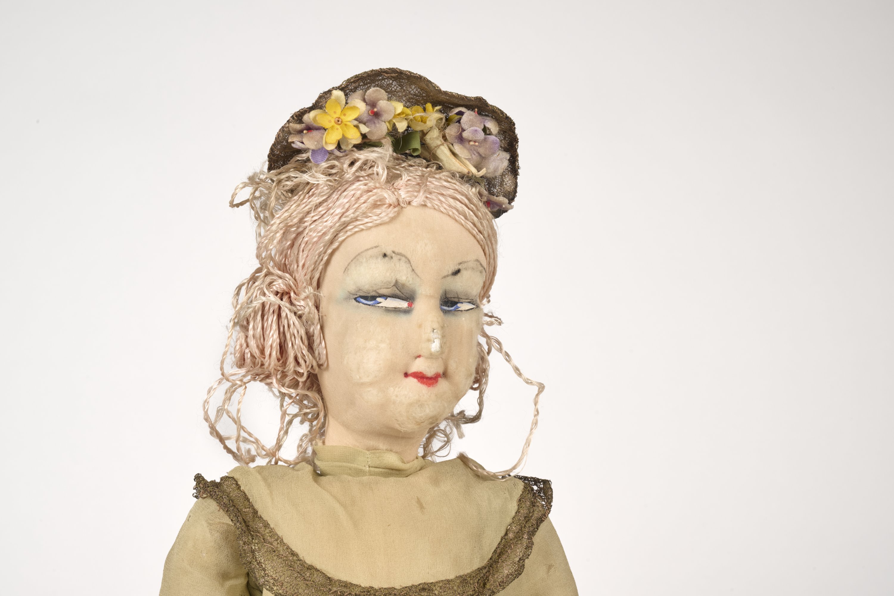 La mode des "poupées-portraits" atteint son paroxysme dans le Paris des années folles. Outre les poupées aux traits caricaturaux de Marie Vassilieff (Russe, 1884-1919), il faut noter les productions de Stefania Lazarska et de Germaine de Roton (Française, 1889-1942). Alors que la deuxième produit, en sus de poupées-portraits, notamment de Joséphine Baker (35e vente Garden-Party, Rouillac, 4 juin 2023, n°2), des poupées de salon en tissu, inspirées des contes slaves et des chefs-d'oeuvre de la peinture, la troisième représente Ida Rubinstein et La Pavlova en 1924 (Lyon, Musée des Beaux-Arts, inv. FNAC 8680 1 et 2). Lazarska réunit une trentaine d'artistes dans l'atelier polonais qu'elle fonde à Paris en 1915 (cf. "Pionnières. Artistes dans le Paris des années folles", cat. exp., Paris, Musée du Luxembourg, 2 mars - 10 juillet 2022, Paris, RMN, 2022, p. 73, 82-83). Notre poupée est toujours restée dans la descendance de la comtesse Tatiana Scheremetiew, dont la carrière de chanteuse internationale débute dès l'âge de 14 ans avec son interprétation de "Blanche-Neige" dans la version suédoise du film de Walt Disney.