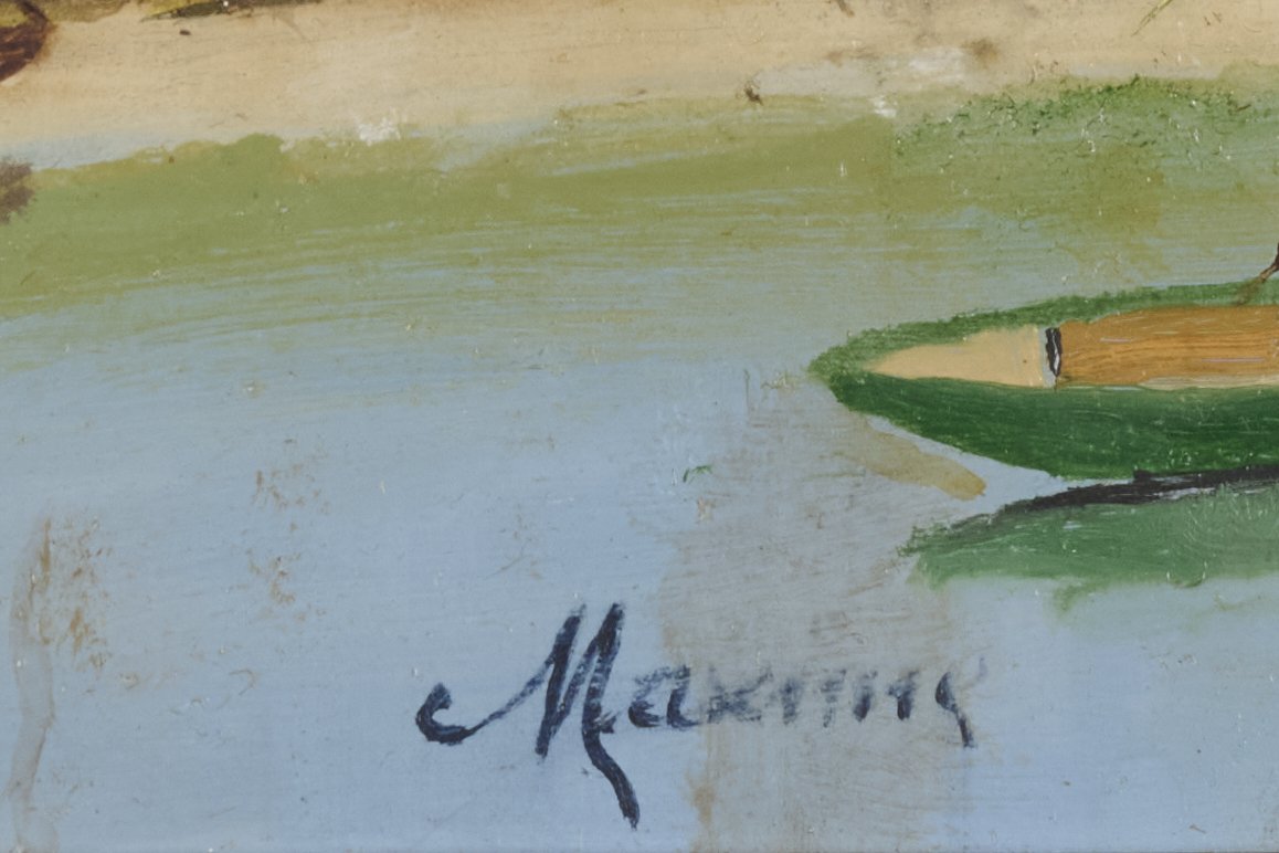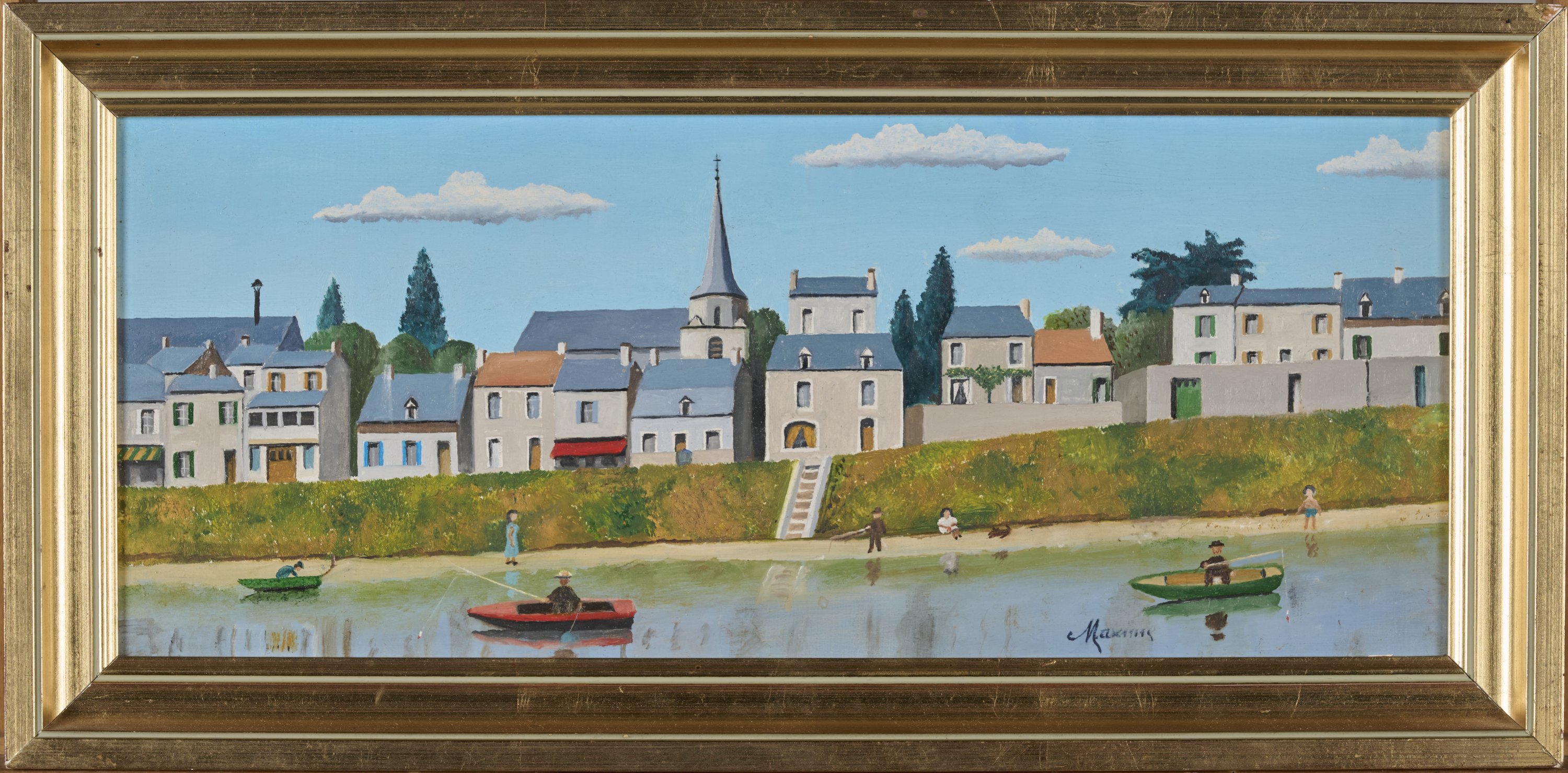 Signé en bas vers la droite. Etiquette au dos avec les mentions "Forma iregulier 37 x 16 / Bord de Loire / Maxime / 1976".