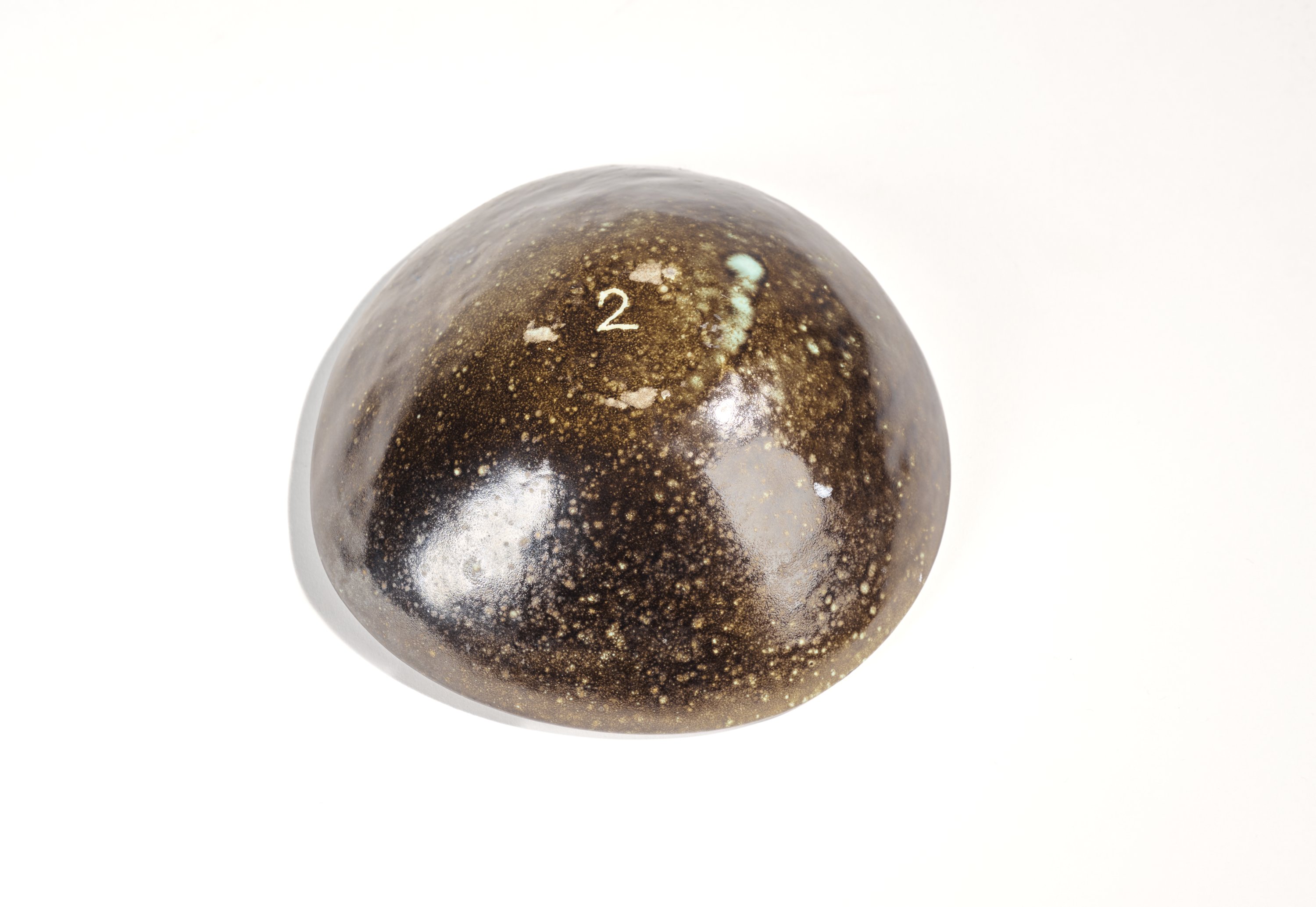 Grès émaillé. L'intérieur à décor géométrique de deux demi-cercles entrecroisés.