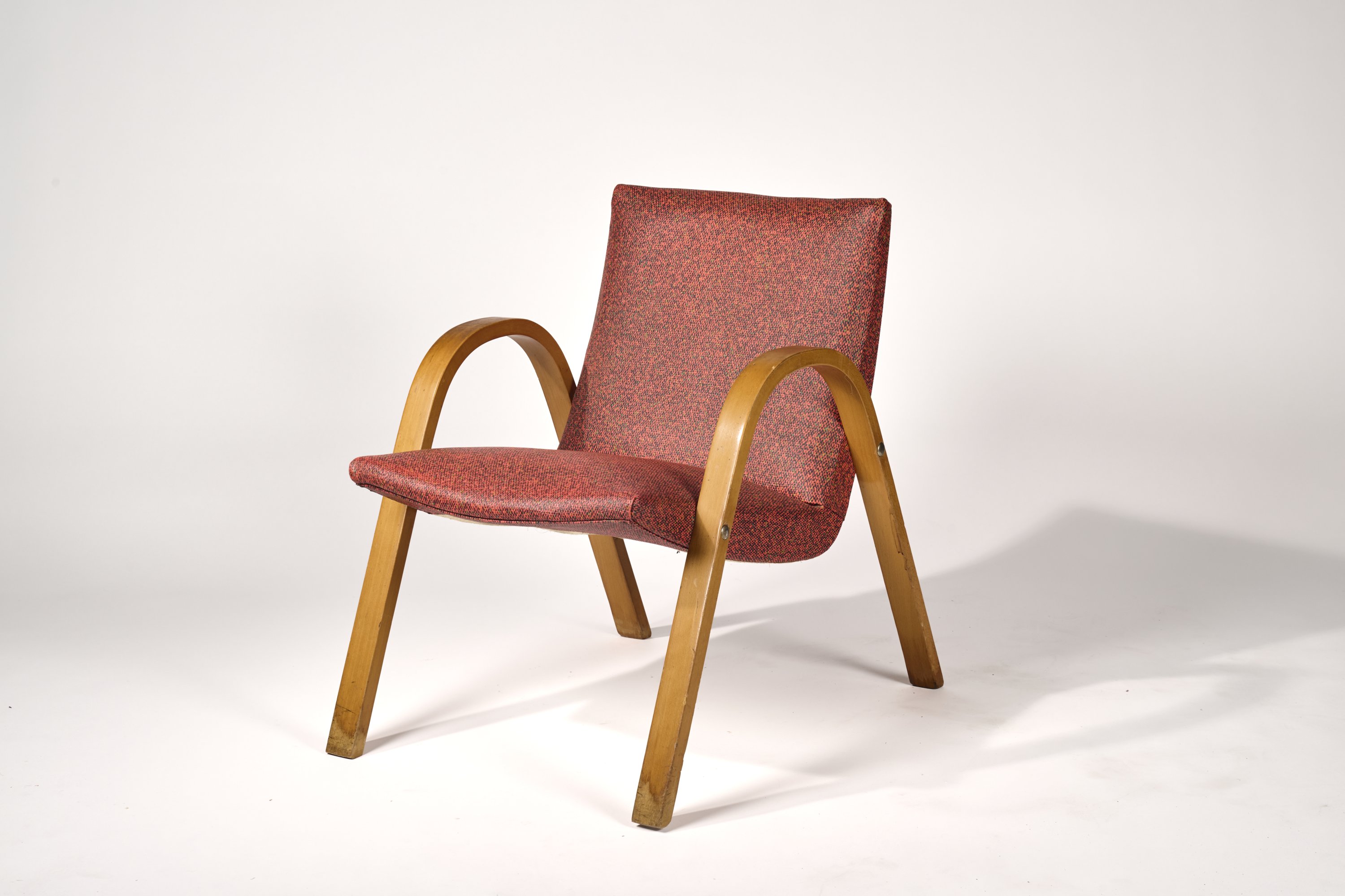 "1951-54. Hugues Steiner rencontre Pierre Guariche, figure de proue des jeunes décorateurs et créateurs de modèles de série. Avec lui, il va signer plusieurs icônes du design: la superbe table basse tripode Bow Wood Steiner, le fauteuil Bow Wood, suivis rapidement par la série Tonneau avec des modèles comme les chaises Tulipe, Amsterdam composée d’une coque en bois posée sur un discret piétement métallique."