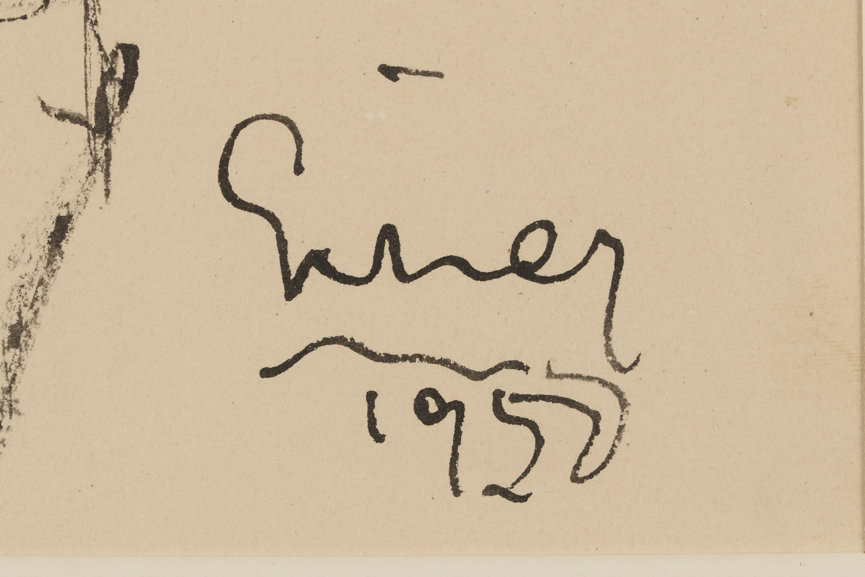- Balbino Giner Garcia (Espagnol, 1910-1976). Torero, 1950. Encre. Signée et datée. Haut. 31 Larg. 23 cm. Cadre baguette en bois doré.