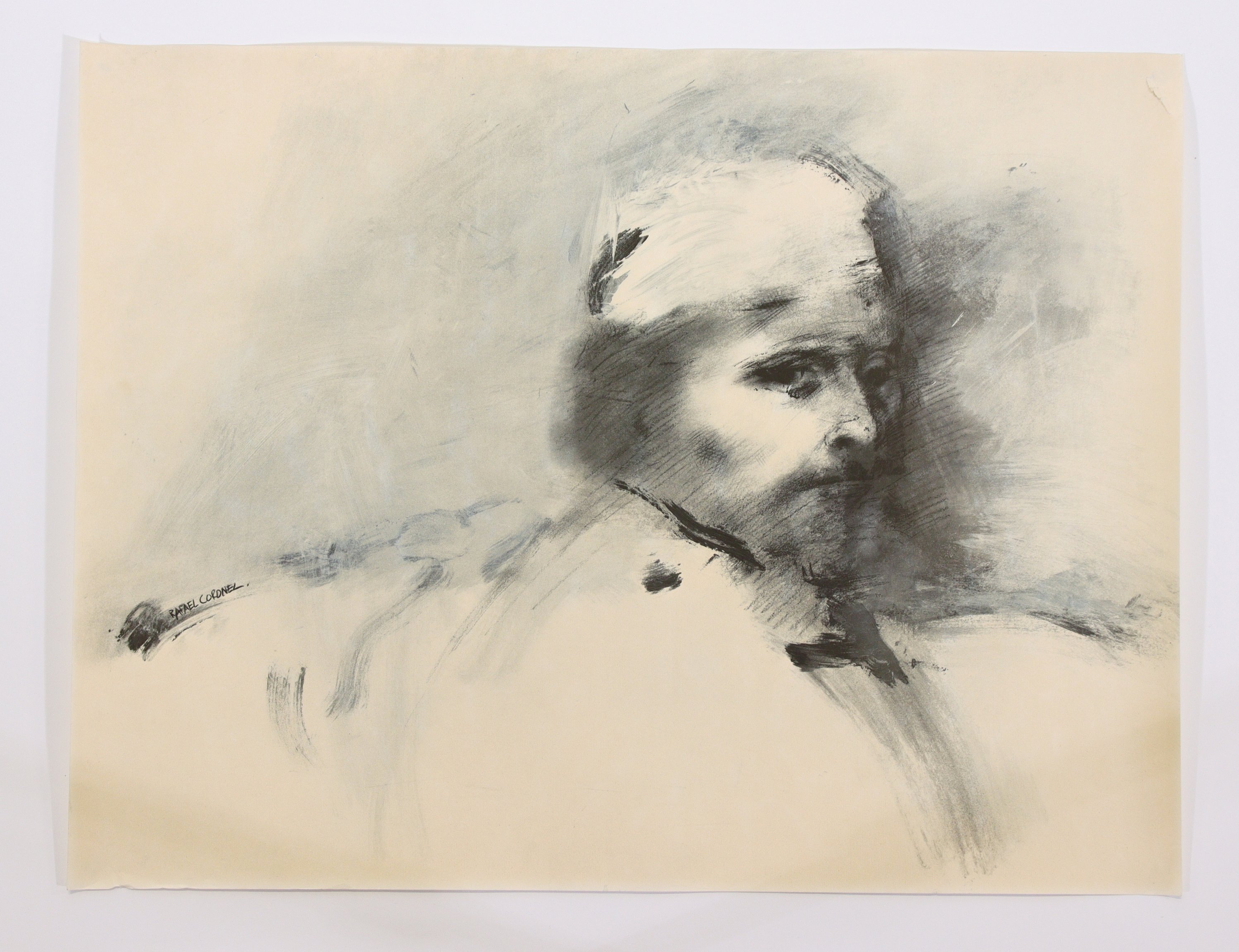 - D'après Rafael Coronel (Mexicain, 1931-2009), Portrait d'homme. Impression offset. Haut. 48 Larg. 63,5 cm.