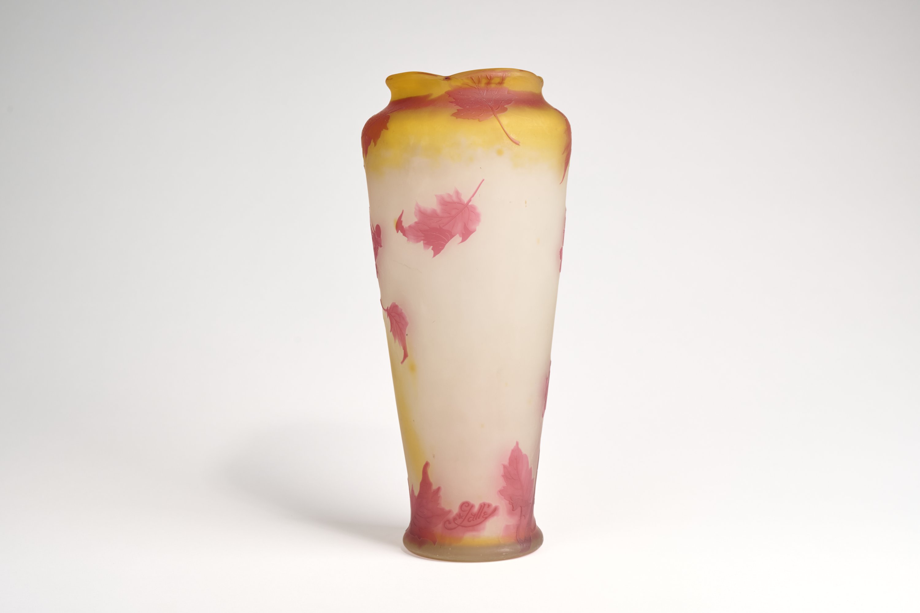 Verre multicouches à décor de cassissier dégagé à l'acide.