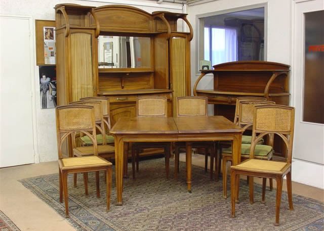 en noyer mouluré, aux montants sinueux et arqués dans la partie supérieure de 12 pièces, comprenant: