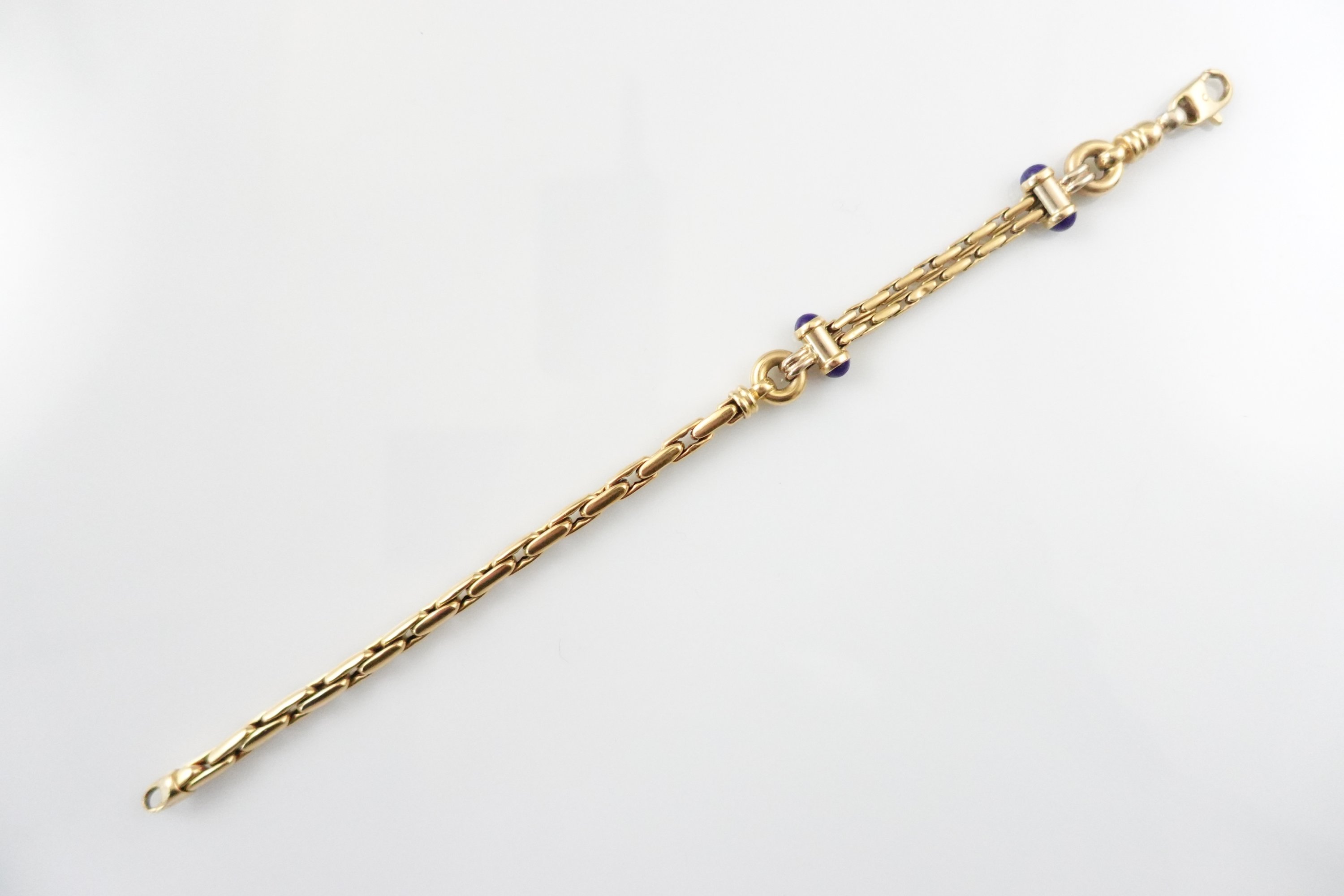 en or jaune 750 millièmes et pierres dures de couleur bleue.