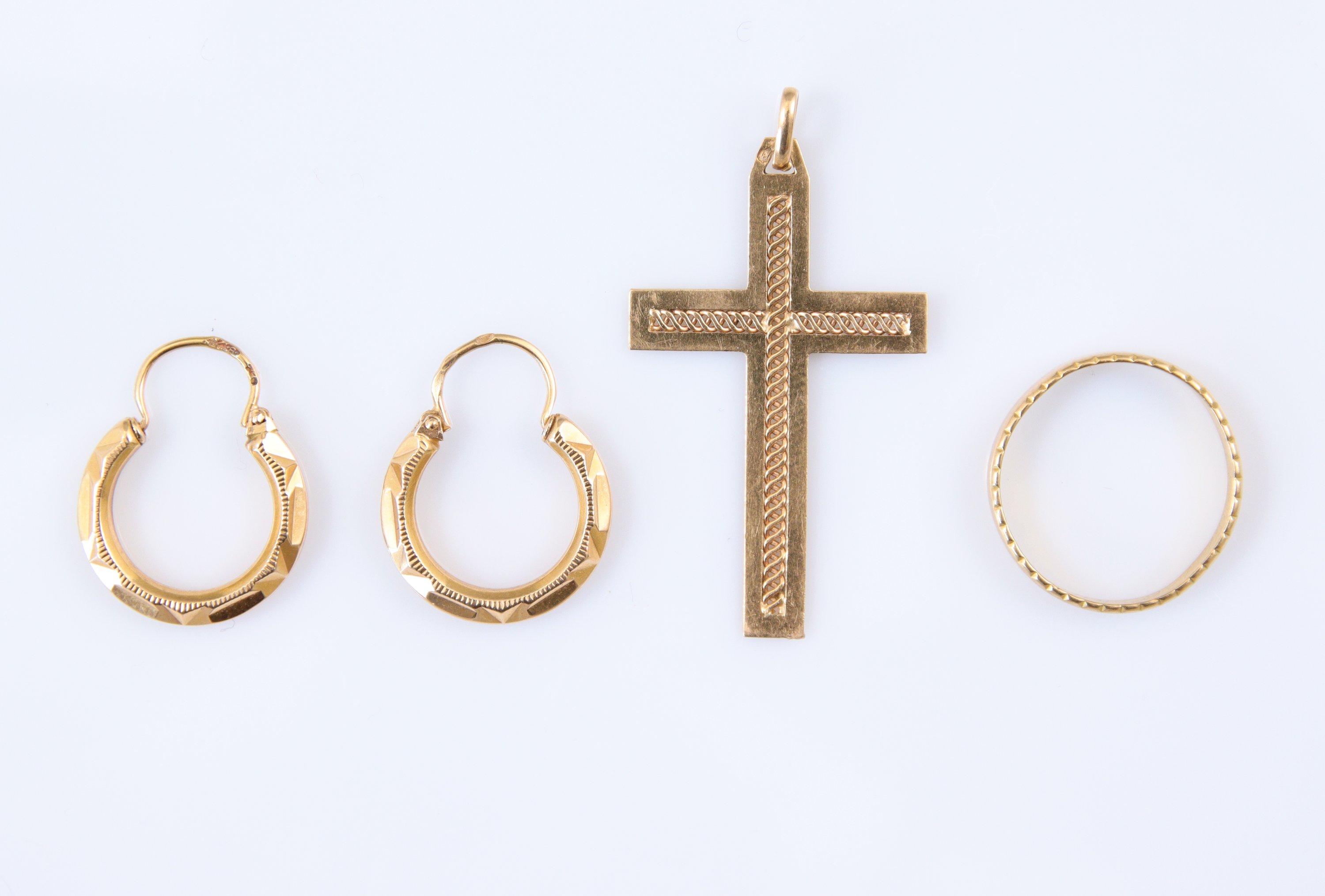 Une croix, une alliance et une paire de boucles d'oreilles