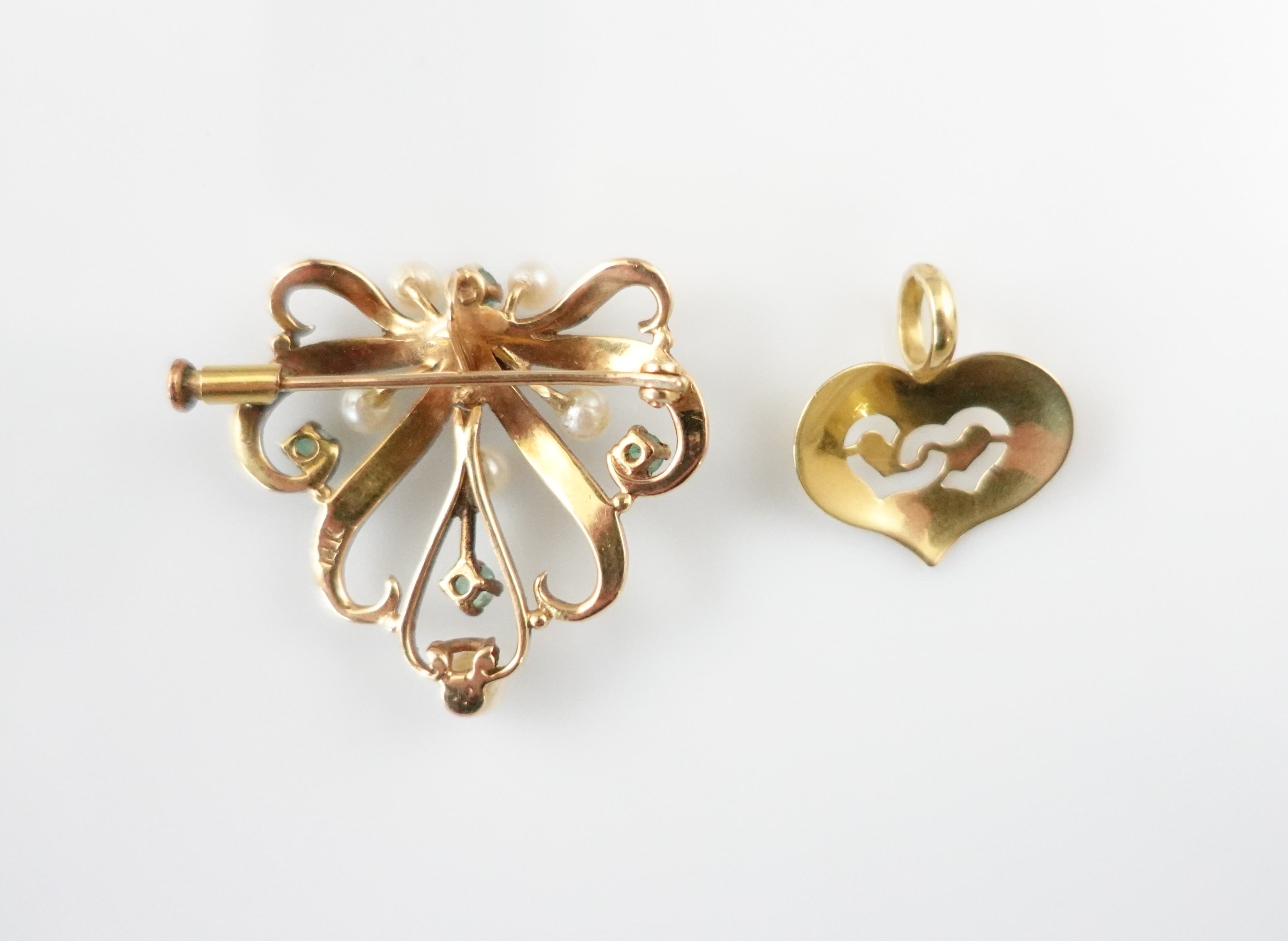 Joint: Pendentif coeur en or jaune 750 millièmes à motifs de deux coeurs entrelacés et ajourés. Poids: 1,4 g.