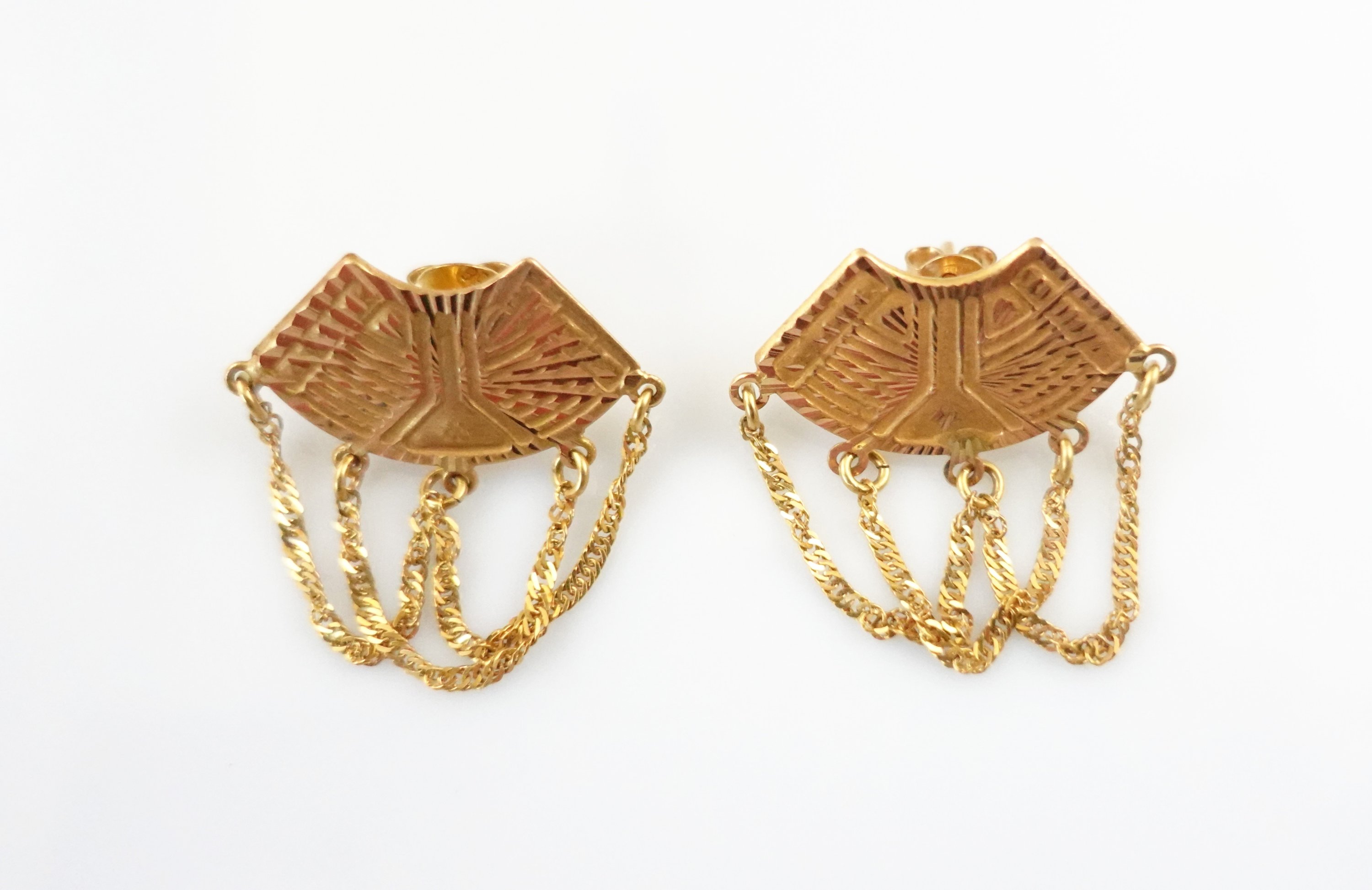 en or jaune 750 millièmes en forme d'arc de cercle à décor de motifs gravés. Avec attache de sécurité.
