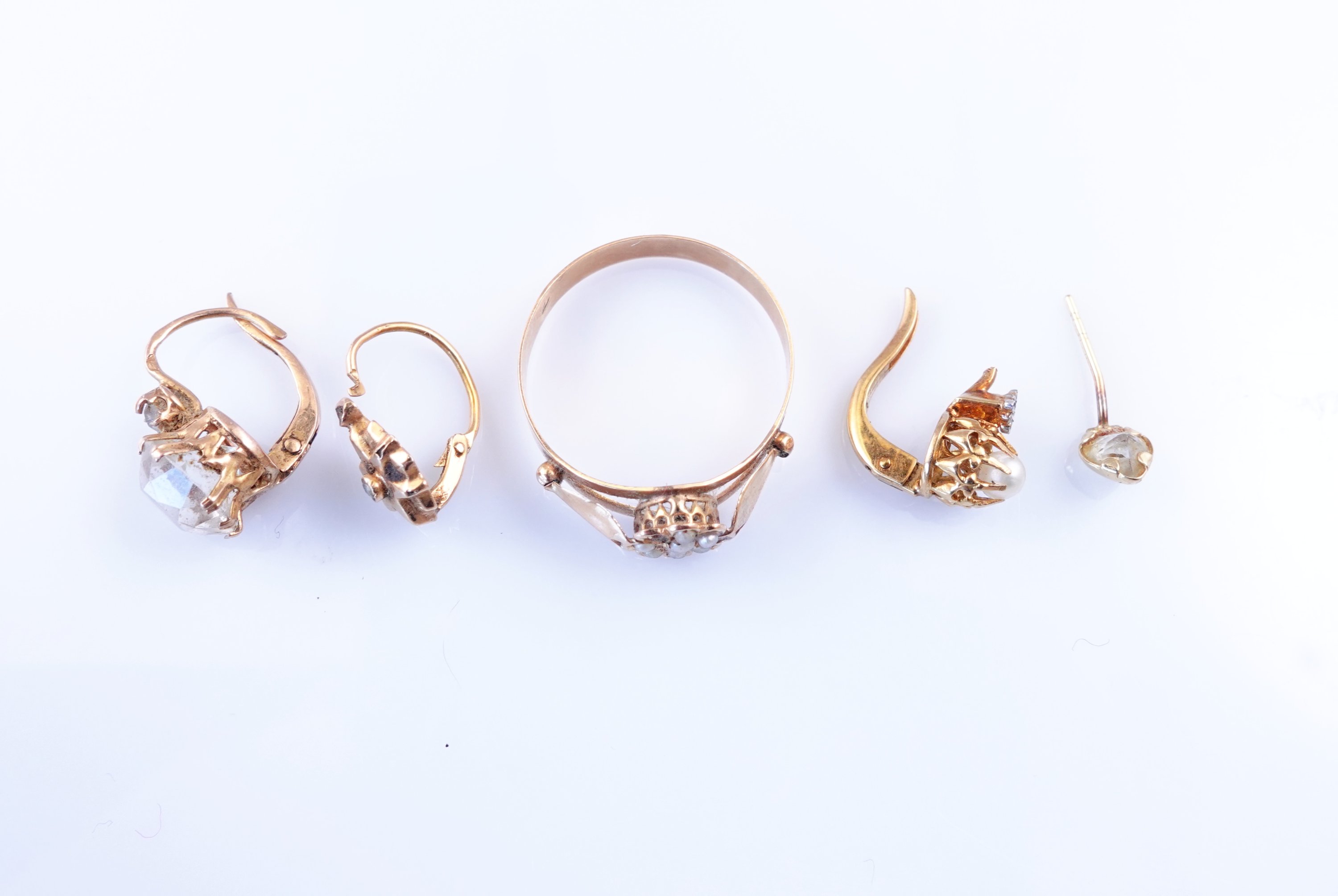 - Quatre boucles d'oreilles dont une à motif d'étoile, une sertie d'une pierre blanche, une sertie d'une pierre blanche en forme de coeur, la dernière d'une perle et une pierre d'imitation.