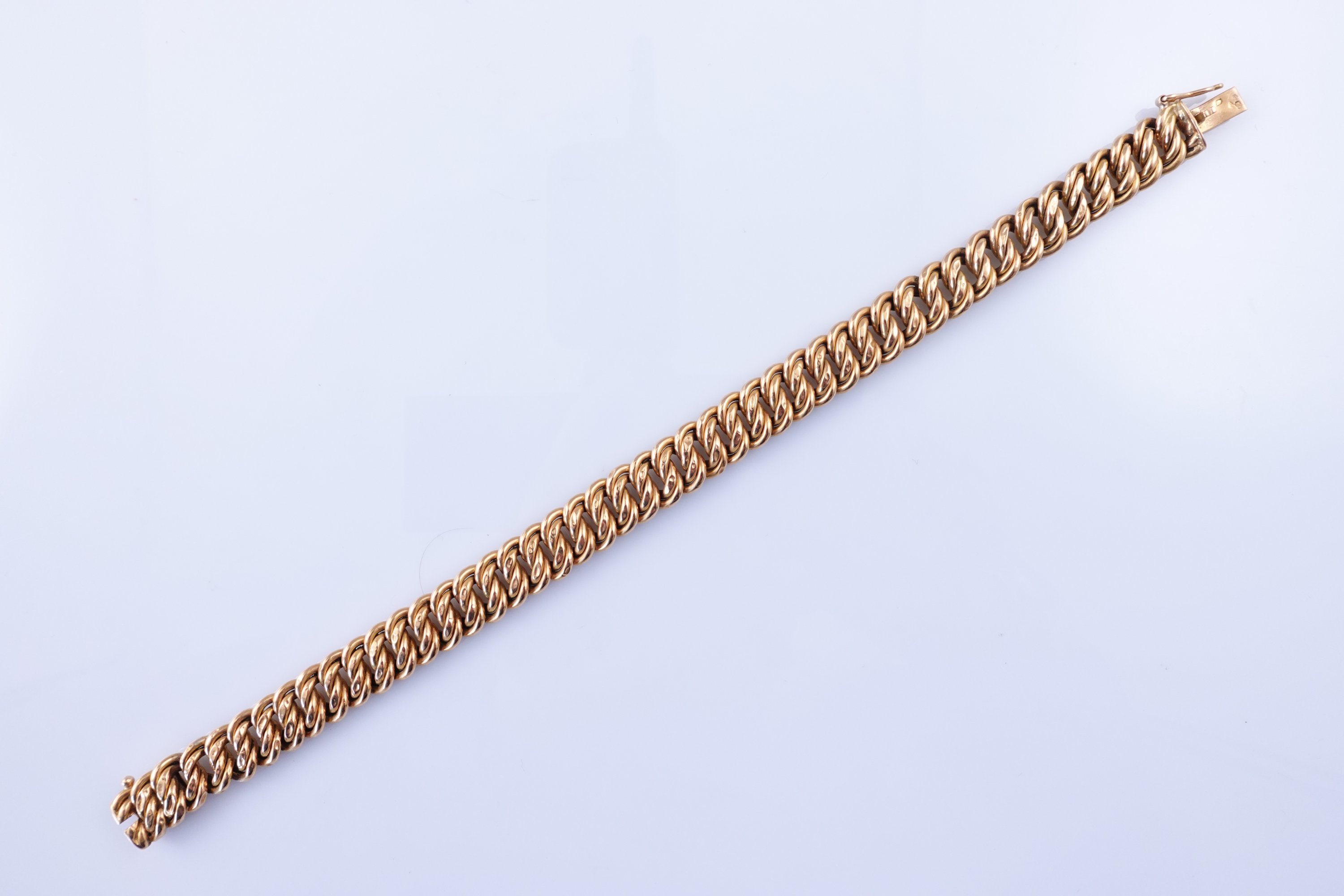en or jaune 750 millièmes, à mailles américaines. Le fermoir à clip de sécurité.