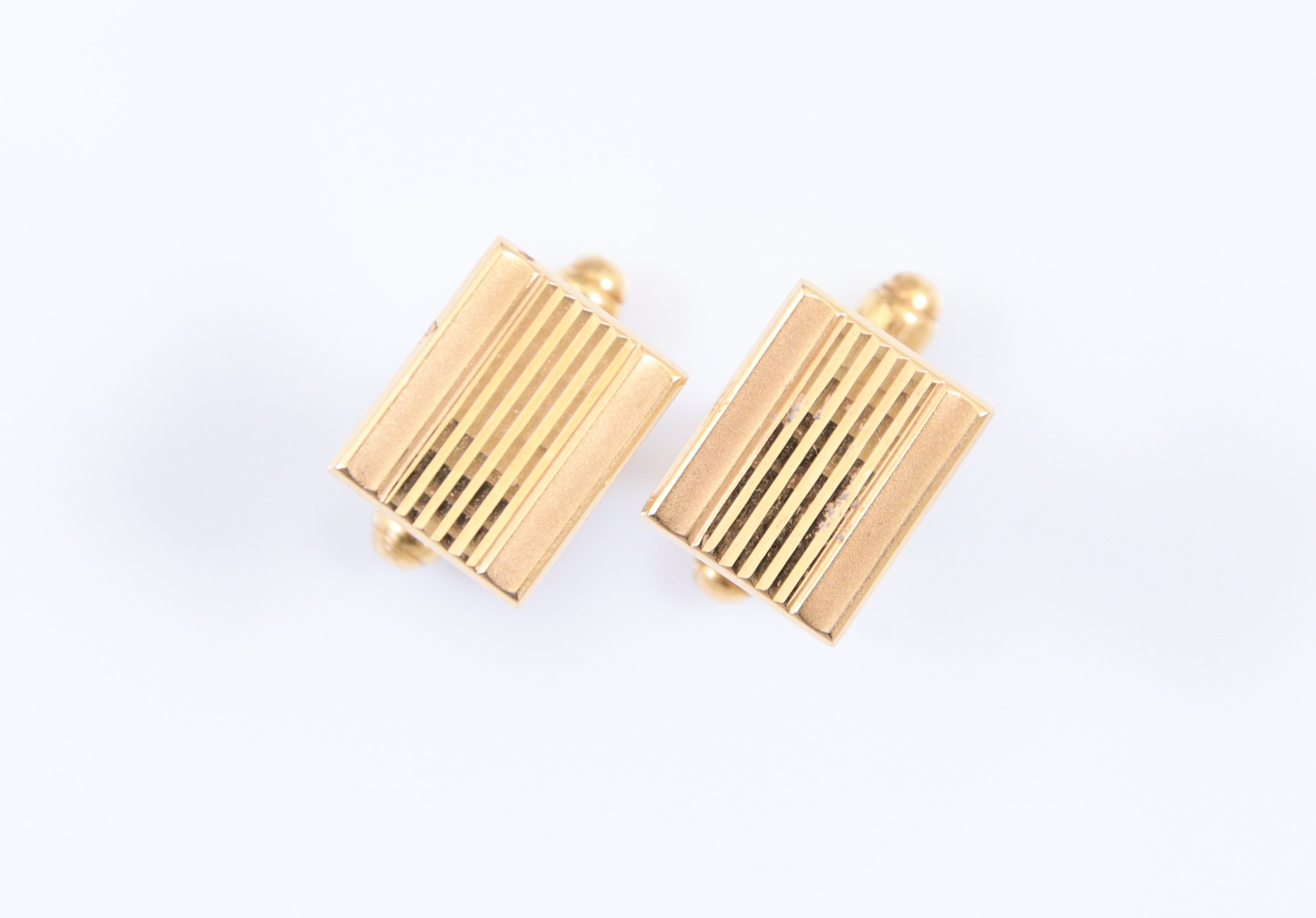 en or jaune 750 millièmes de forme rectangulaire à décor strié.