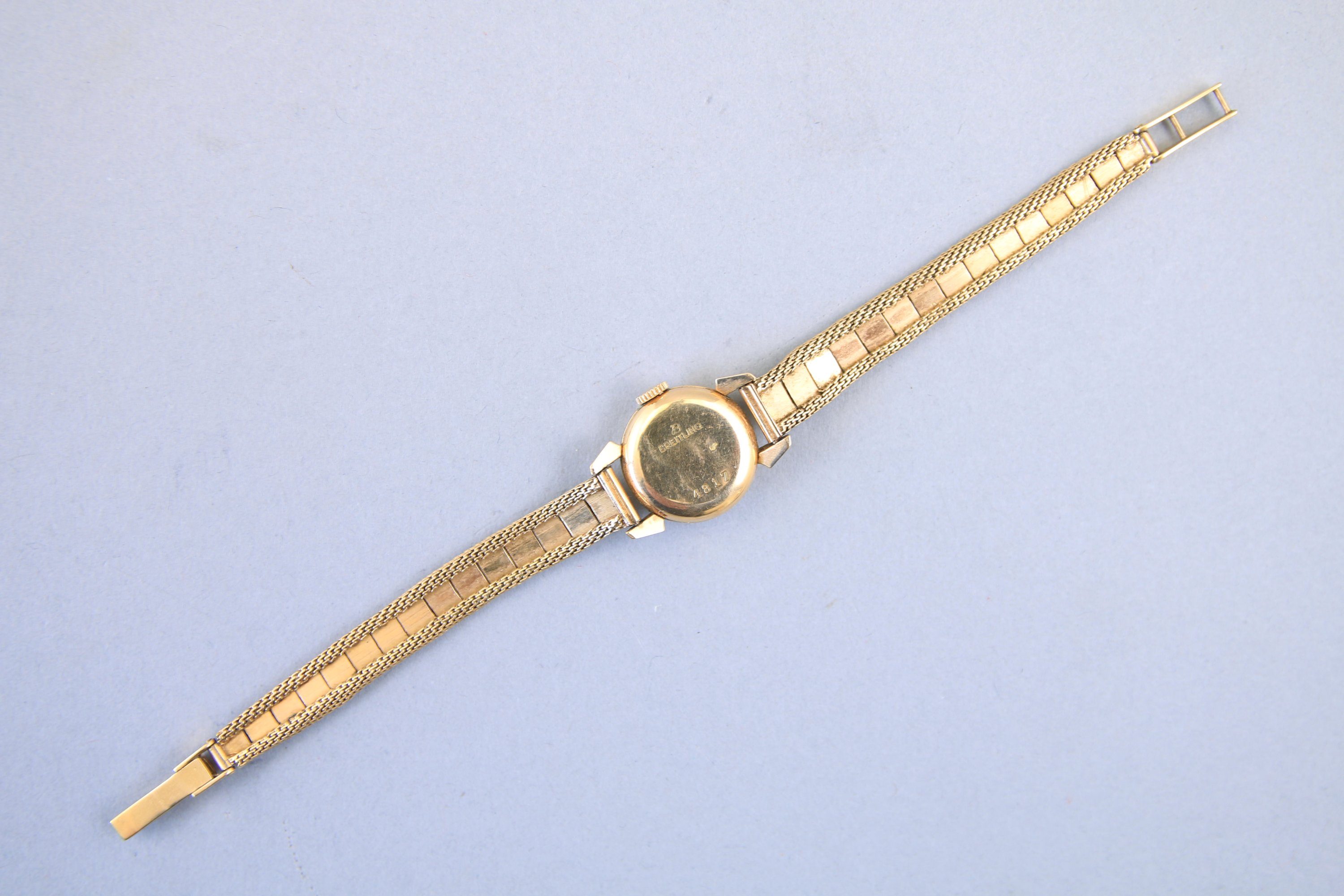 en or jaune 750 millièmes. Le boitier de forme circulaire, le cadran signé "Bretiling Genêve Swiss", gradué pour les heures. Remontoir à trois heures. Numérotée "4817".