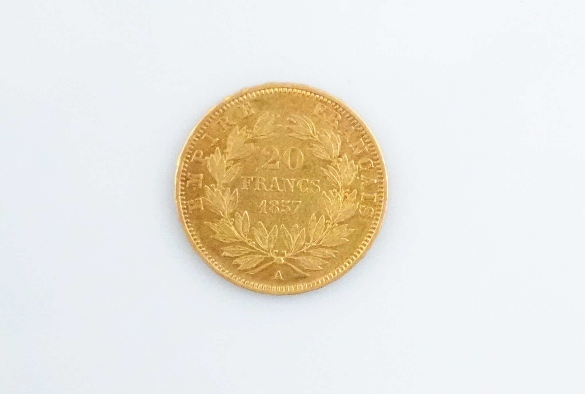 FRANCE. 1 PIECE de 20 FRANCS OR Napoléon III tête nue, 1857, Paris.