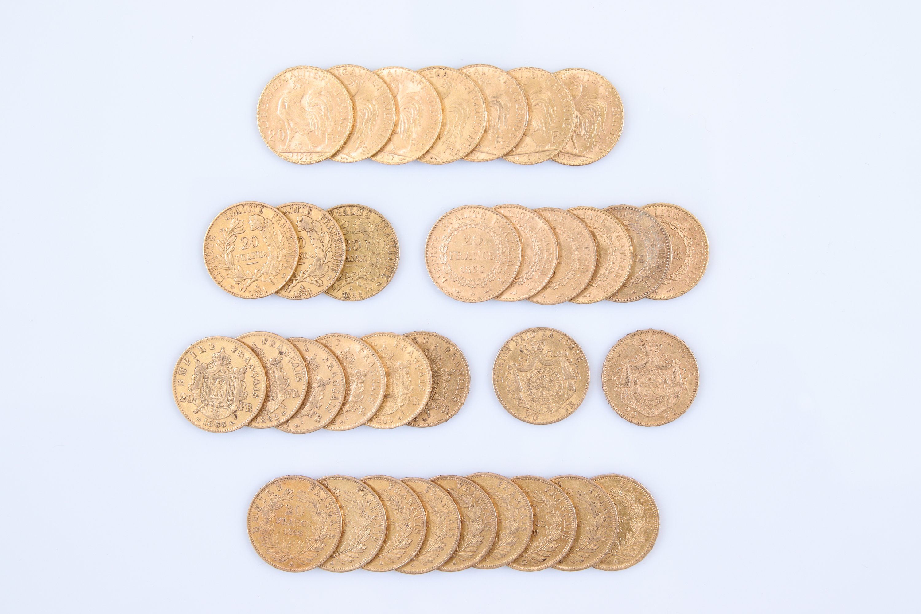 FRANCE et BELGIQUE, 33 PIECES de 20 FRANCS OR: