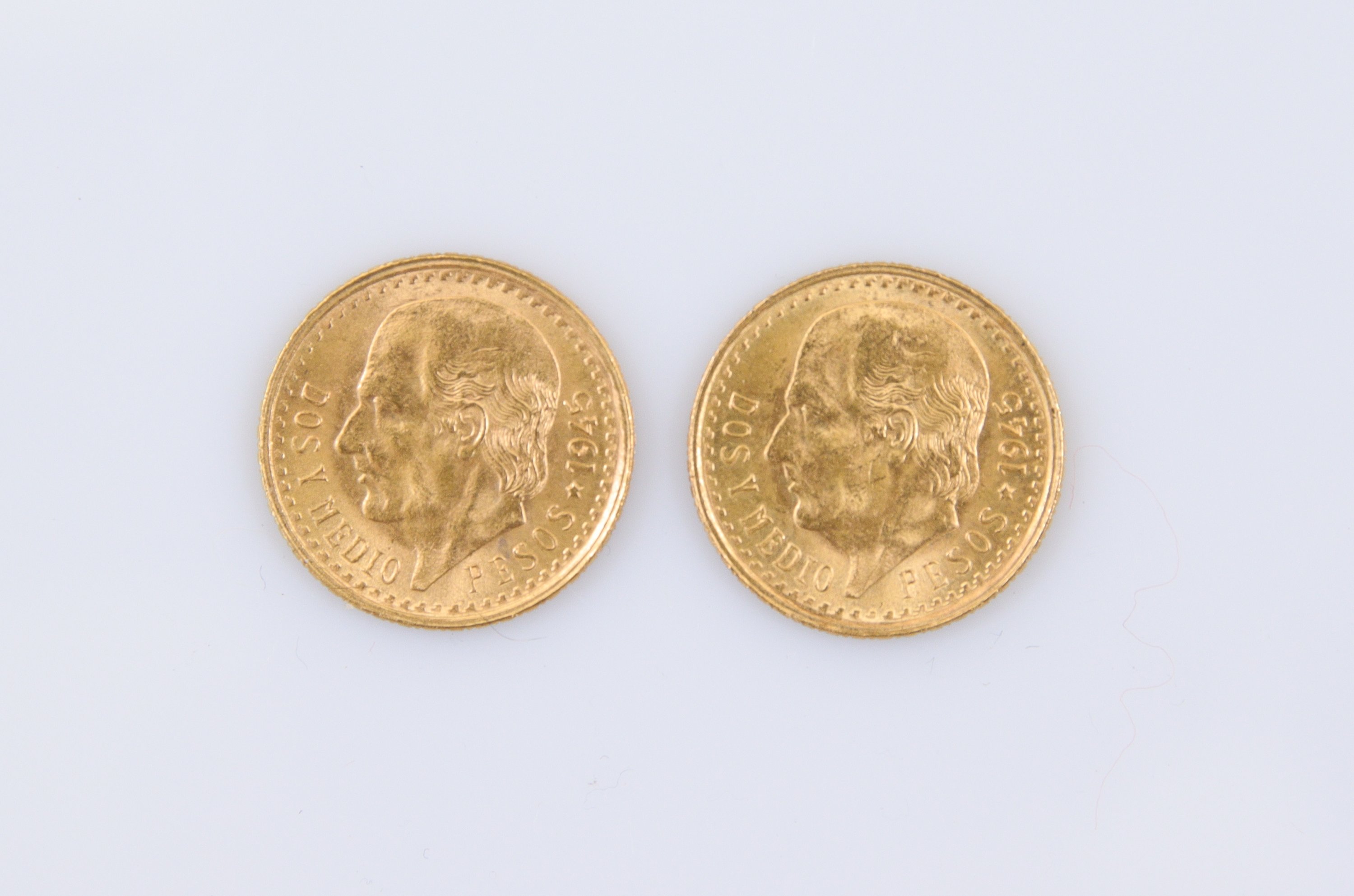 MEXIQUE. 2 PIECES de 2,5 PESOS OR, Miguel Hidalgo, 1945.