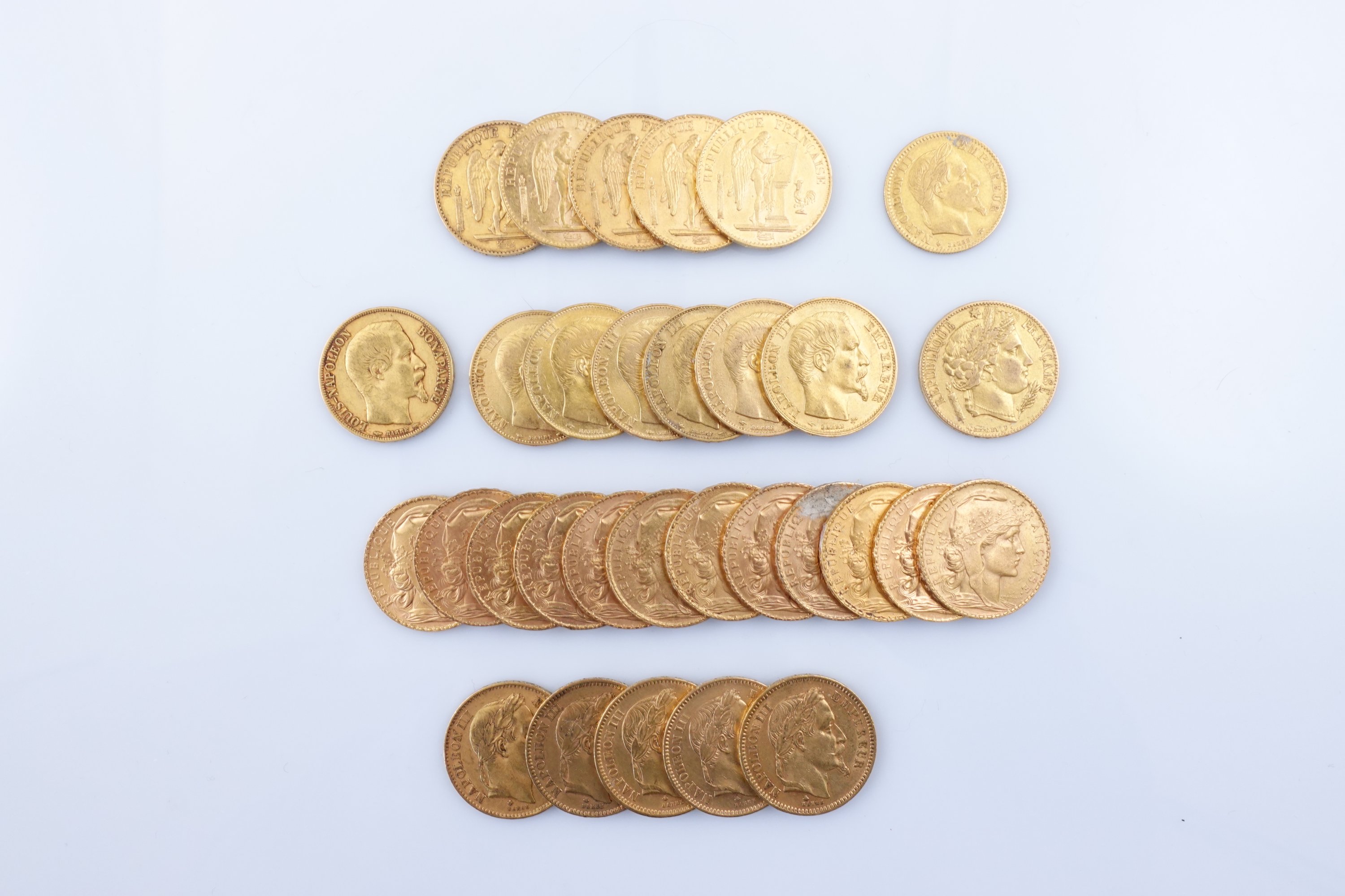 - 12 x 20 francs, Coq, 1902 (1), 1905 (2), 1906 (1), 1907 (1), 1908 (3), 1909 (1), 1911 (2), 1912 (1) ;