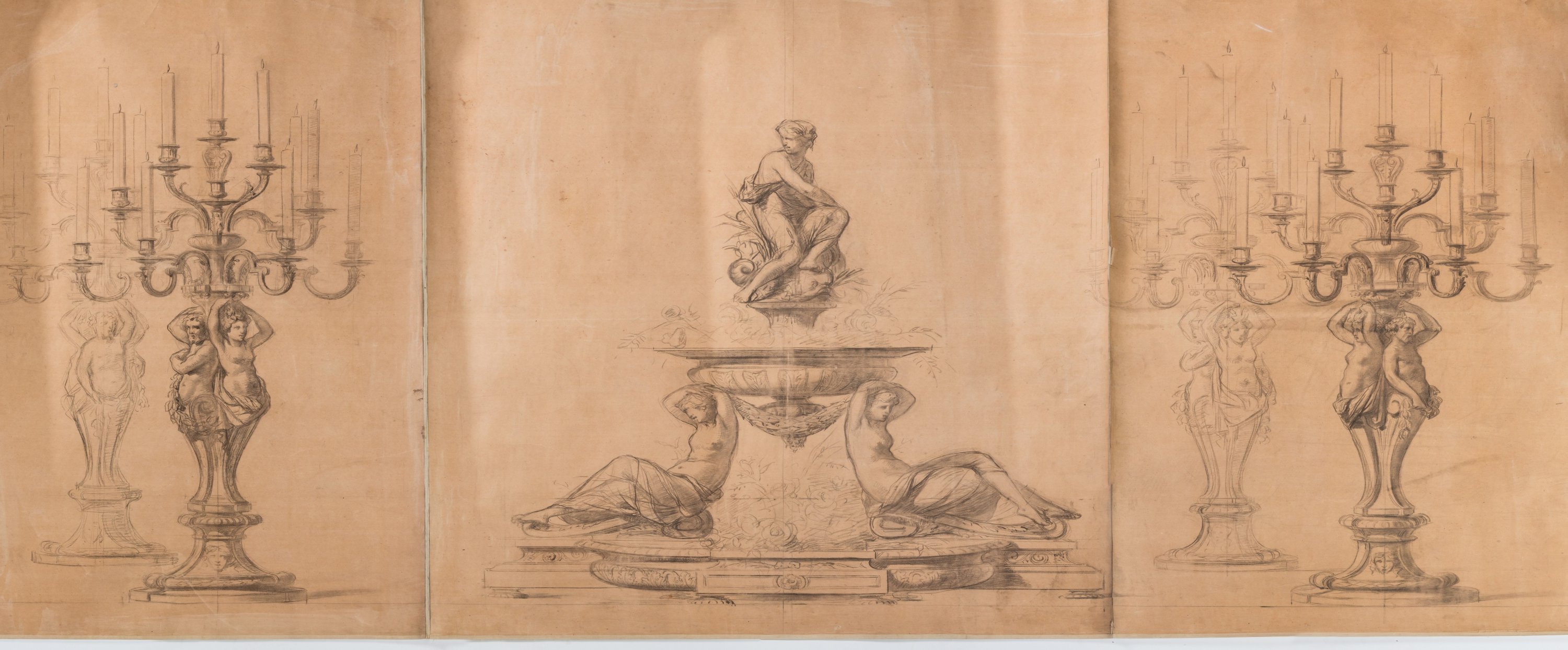 Projet de surtout, grandeur d'exécution, vraisemblablement pour le comte Louis de Chevigné