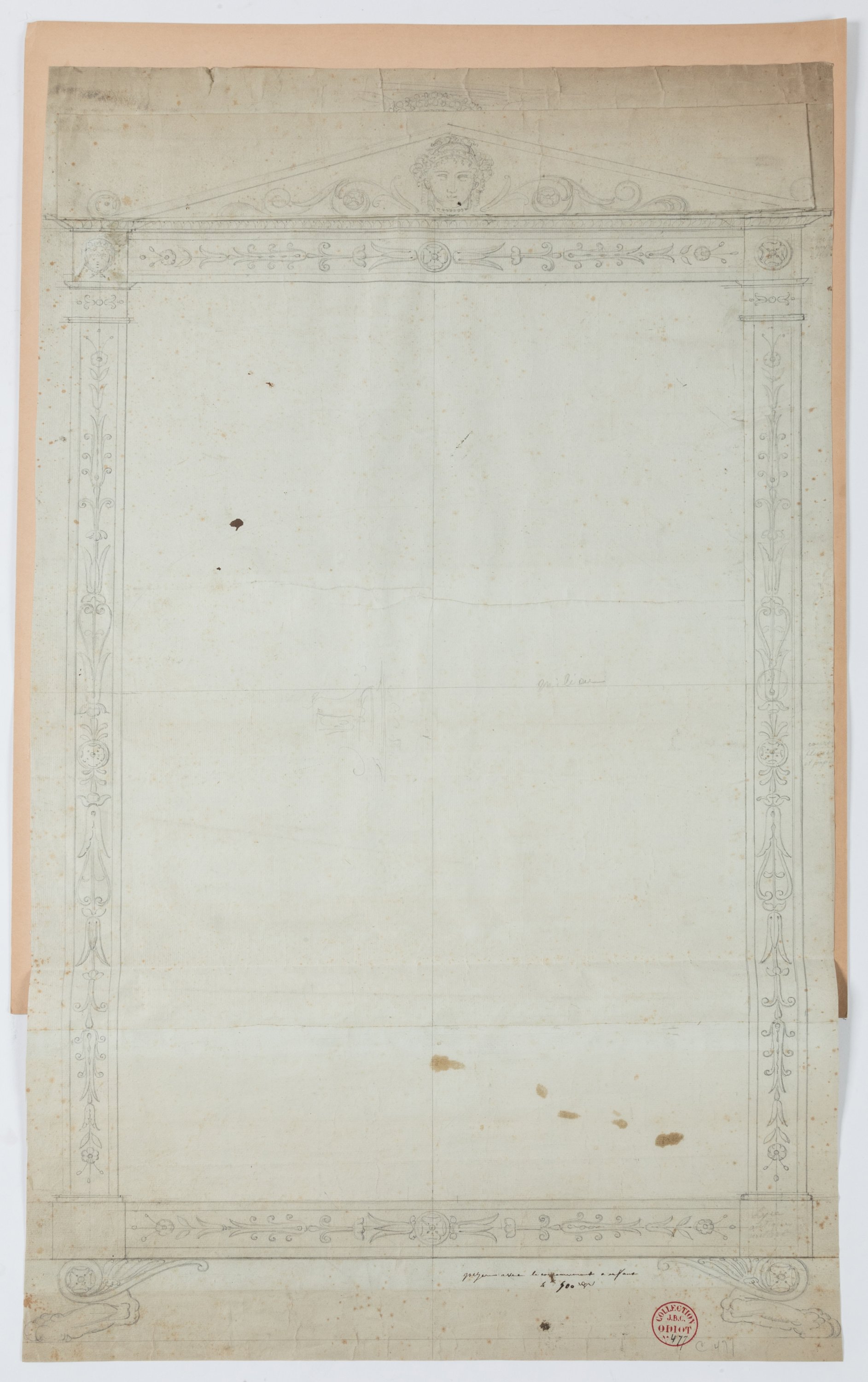 Annoté à l’encre « [?] le couronnement [?] enfant » et daté. Annoté au crayon « Milieu » et « lyre antique ». Cachet en rouge estampé de la collection Jean-Baptiste-Claude Odiot avec le numéro à l’encre « 477 ». Titré au revers « miroir ».