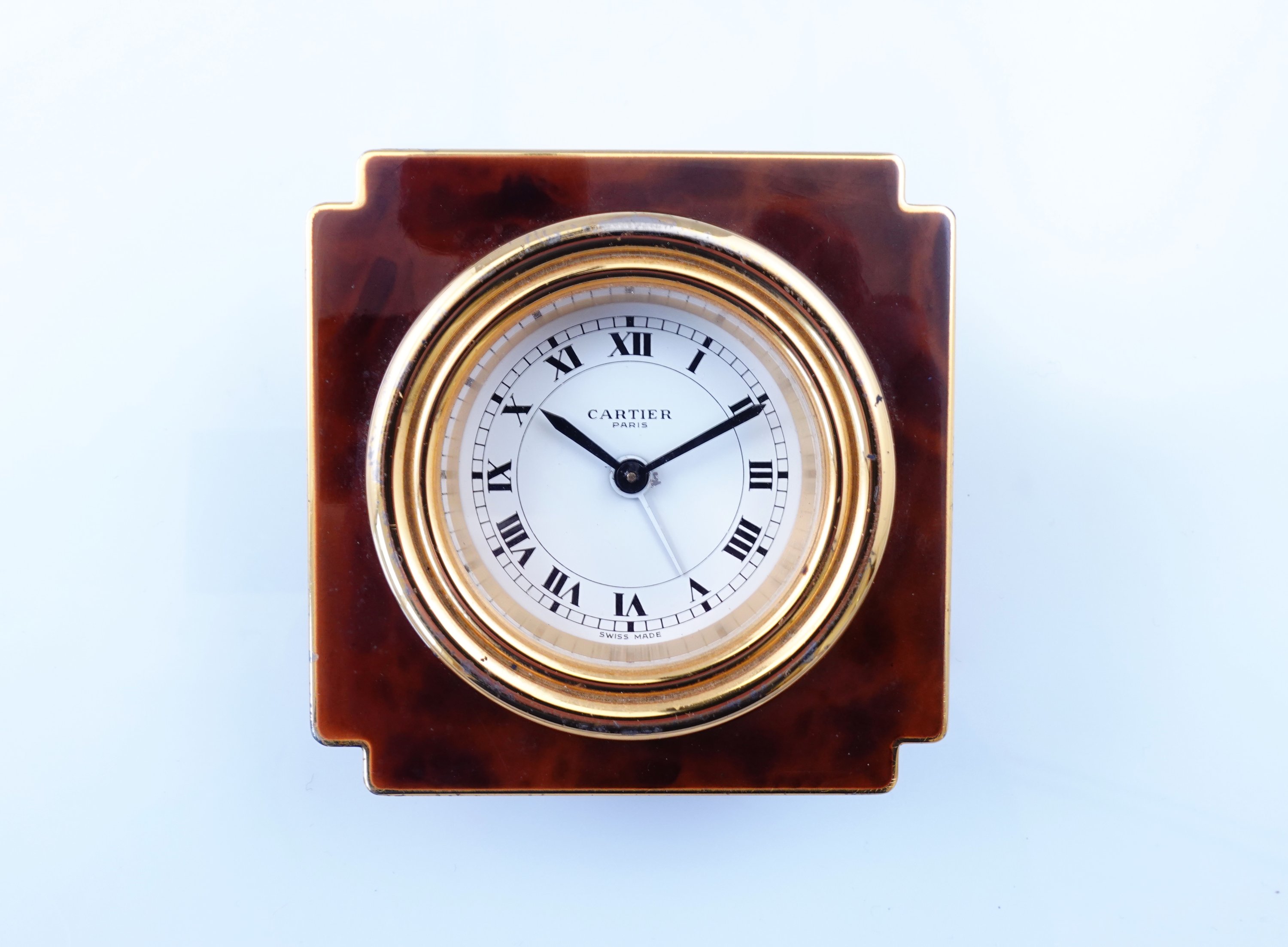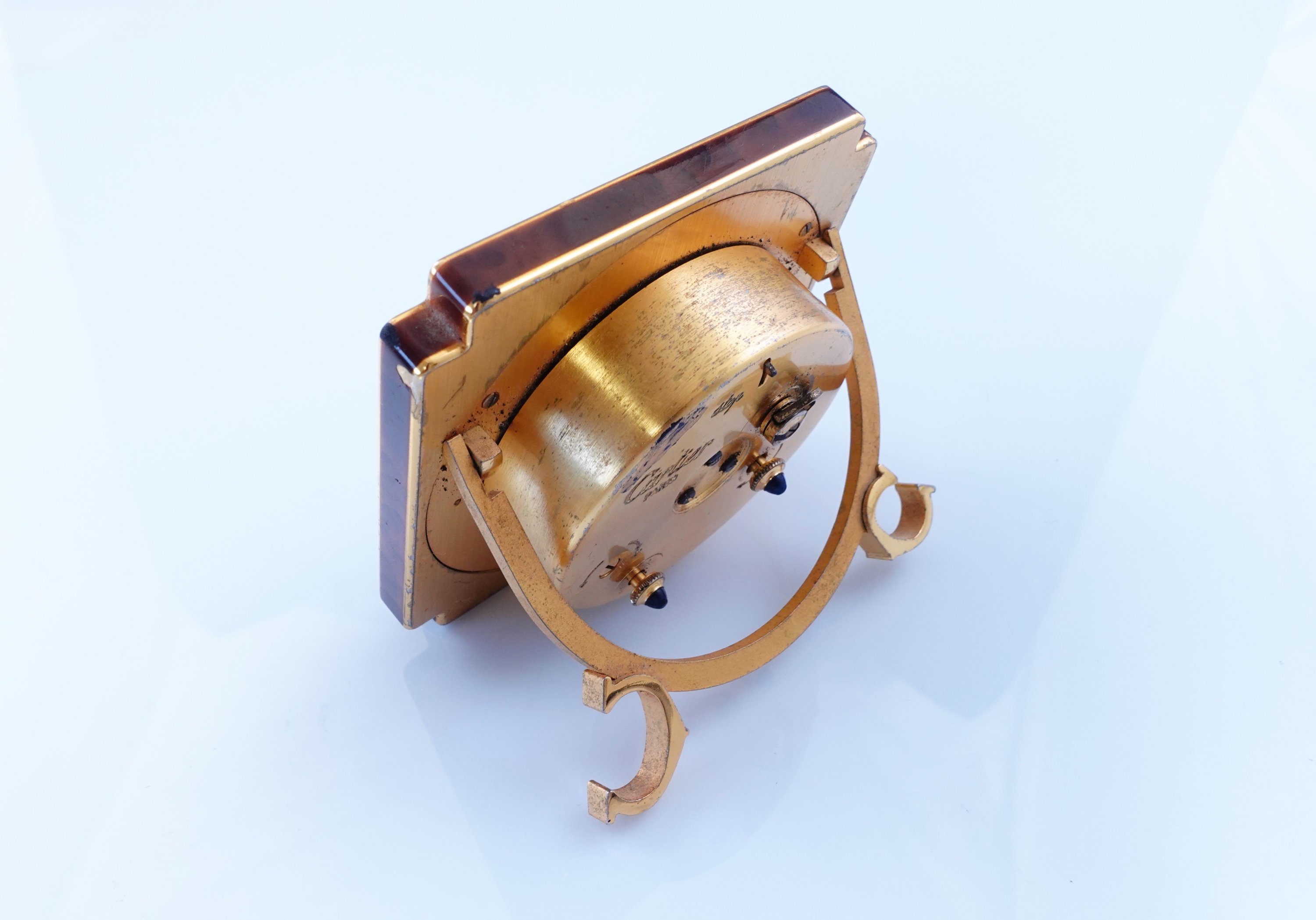 en métal doré et émail brun à la façon de l'écaille, de forme carrée, aux angles rentrés.